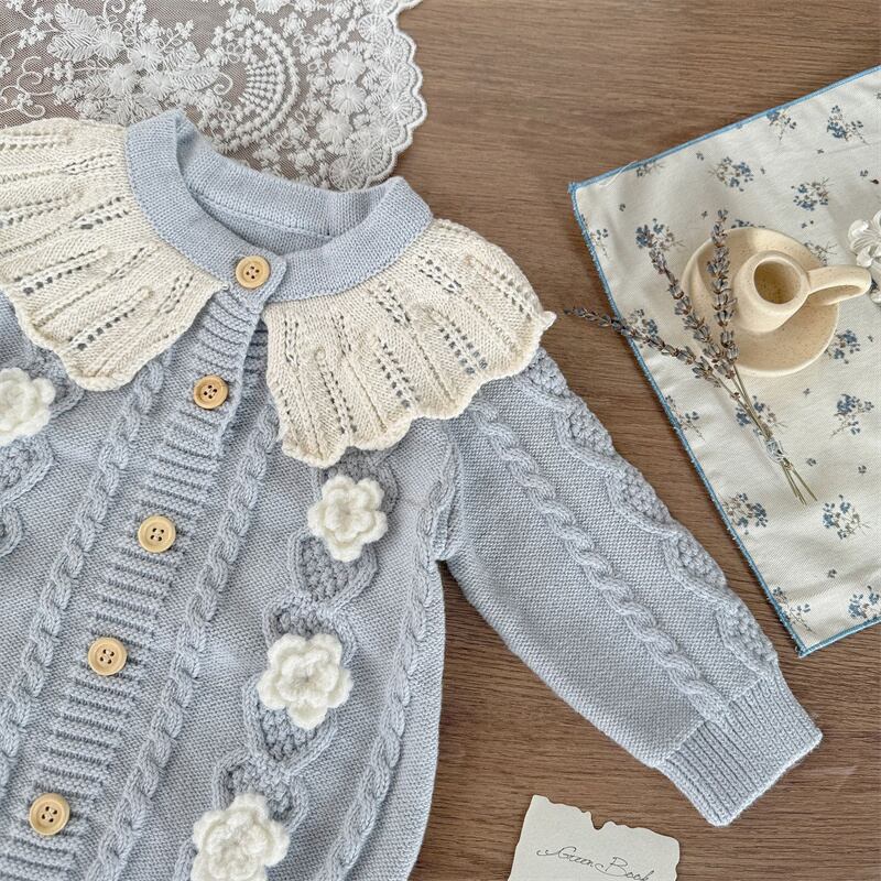 【海外からの取り寄せ】2025秋新作 ベビー服 ラッフルカラー ニット ロンパース 子供服 女の子 お花付き セーター 可愛い #[ckd1095323_24000]【送料込み】【260115】