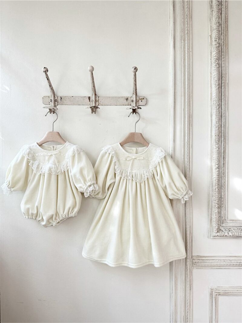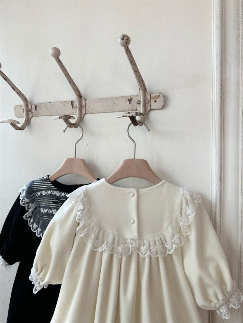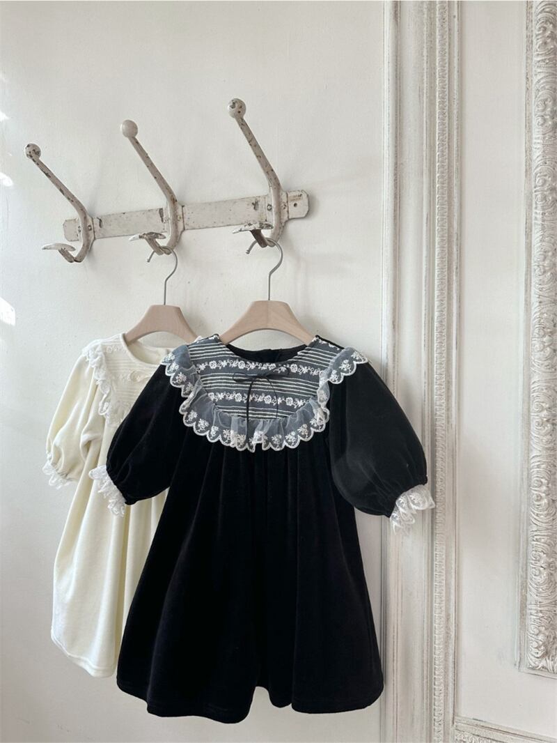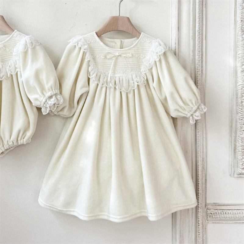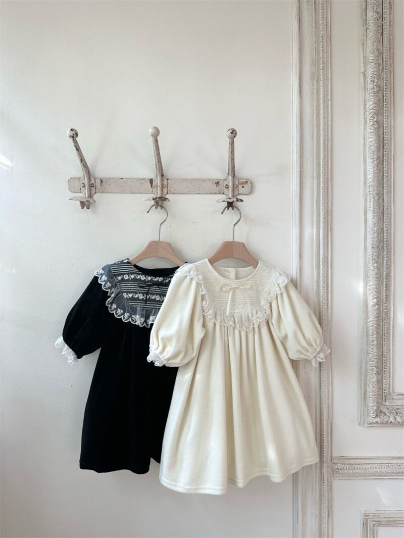 【海外からの取り寄せ】2025秋冬新作 女の子 厚手 長袖 ワンピース 可愛い おしゃれ 子供服 レースドッキング 2色 #[ckd1095320_23200]【送料込み】【260115】