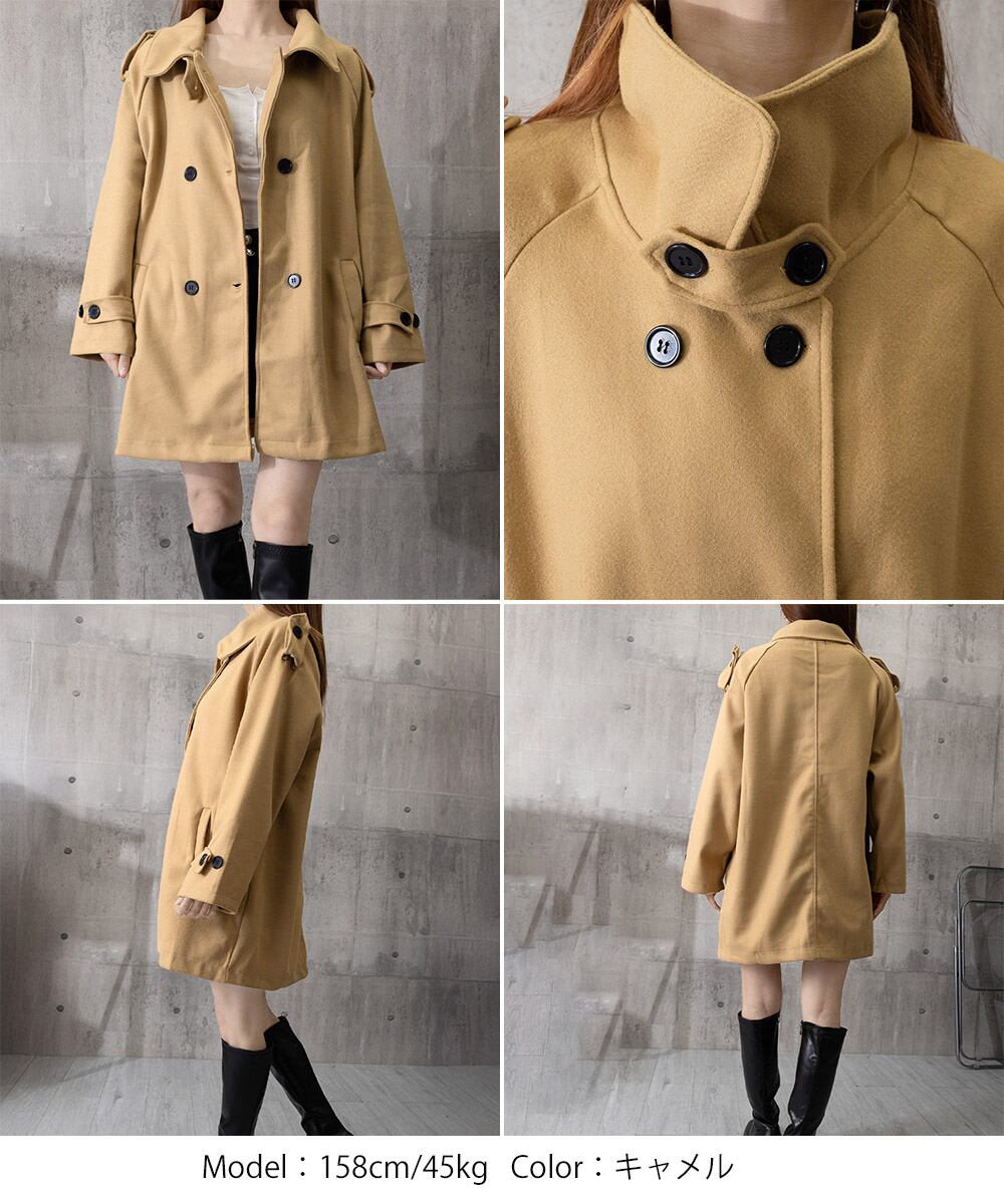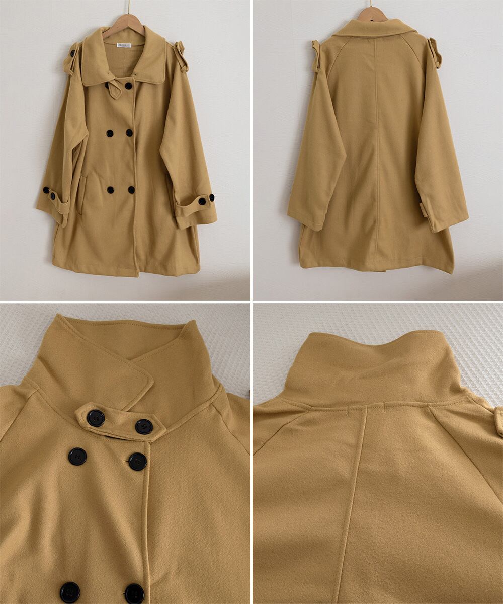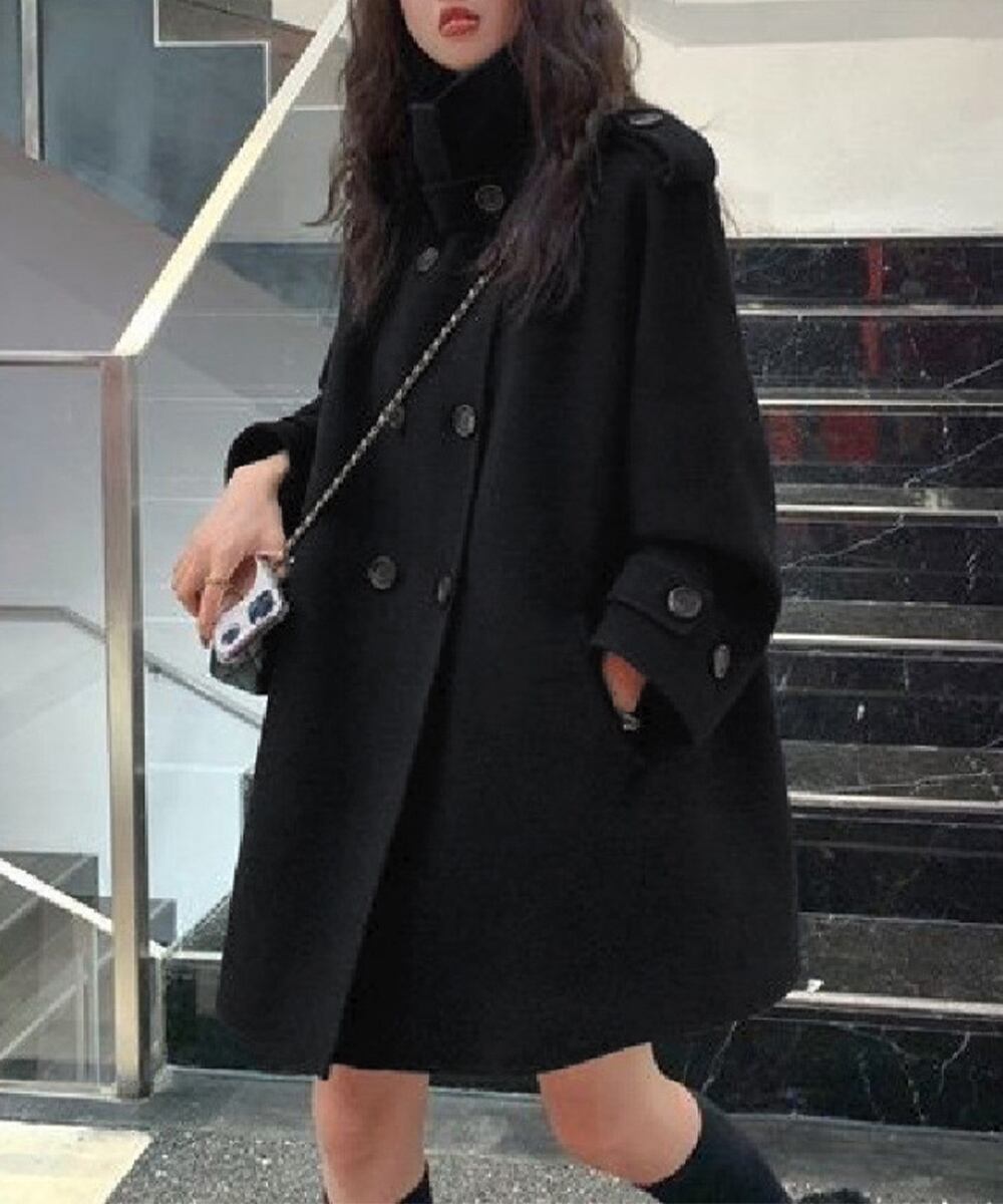 体型カバーゆったり 軽めピーコート中厚 ハーフコート韓国風