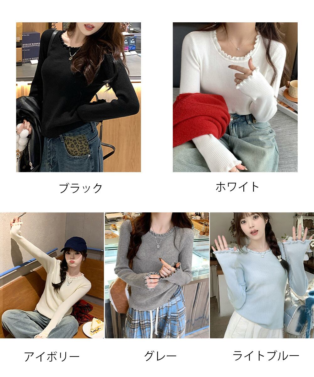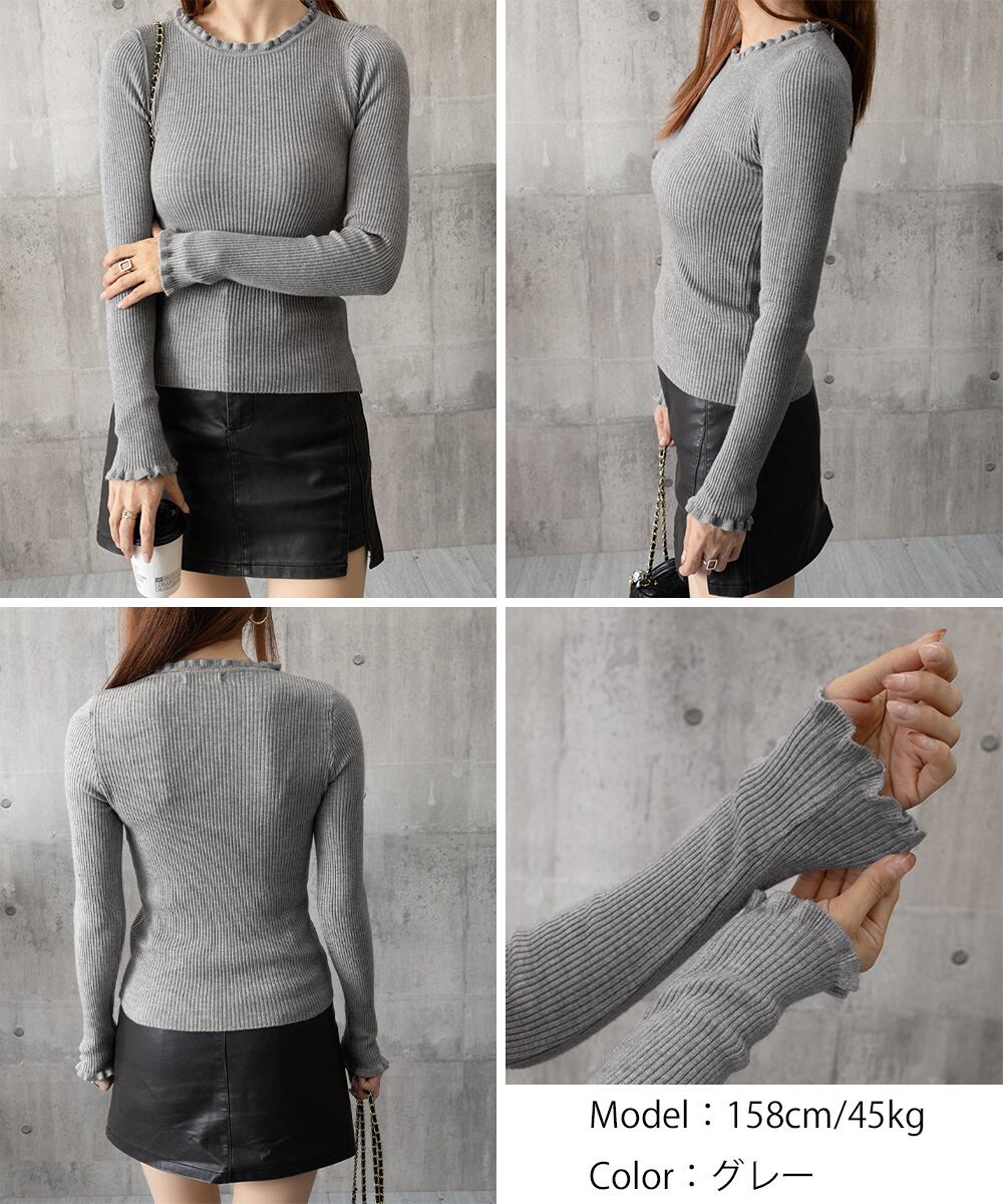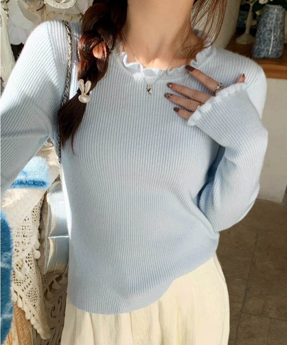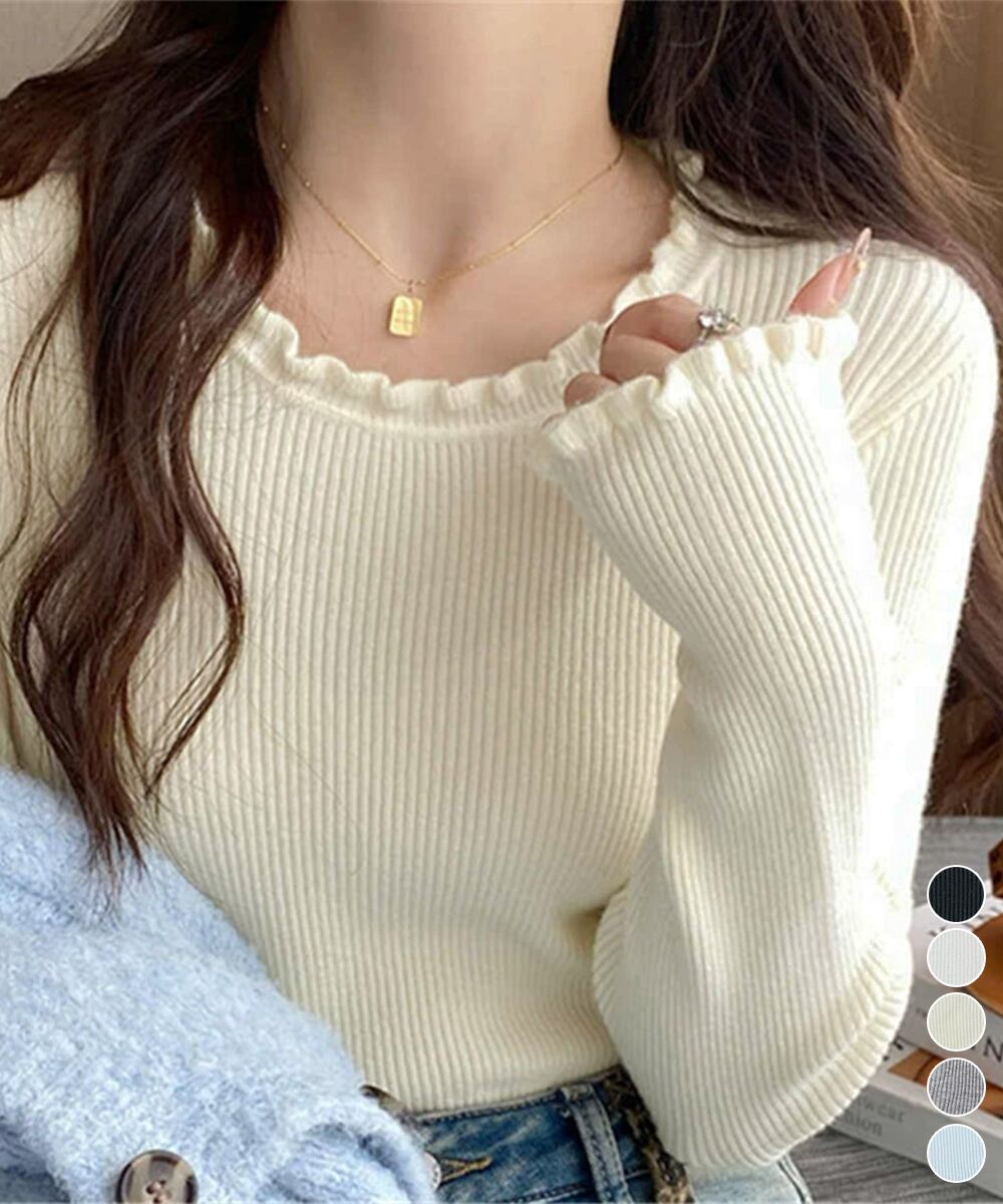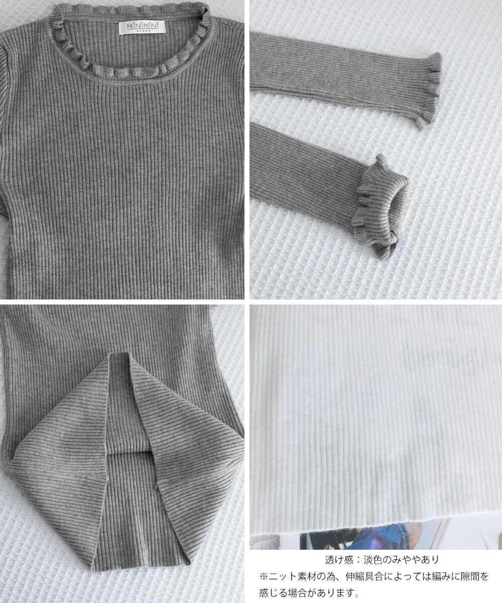 【日本倉庫からの発送】 フリル リブニットトップス クルーネック #[83CHENXN-008_15600]【送料込み】【251210】