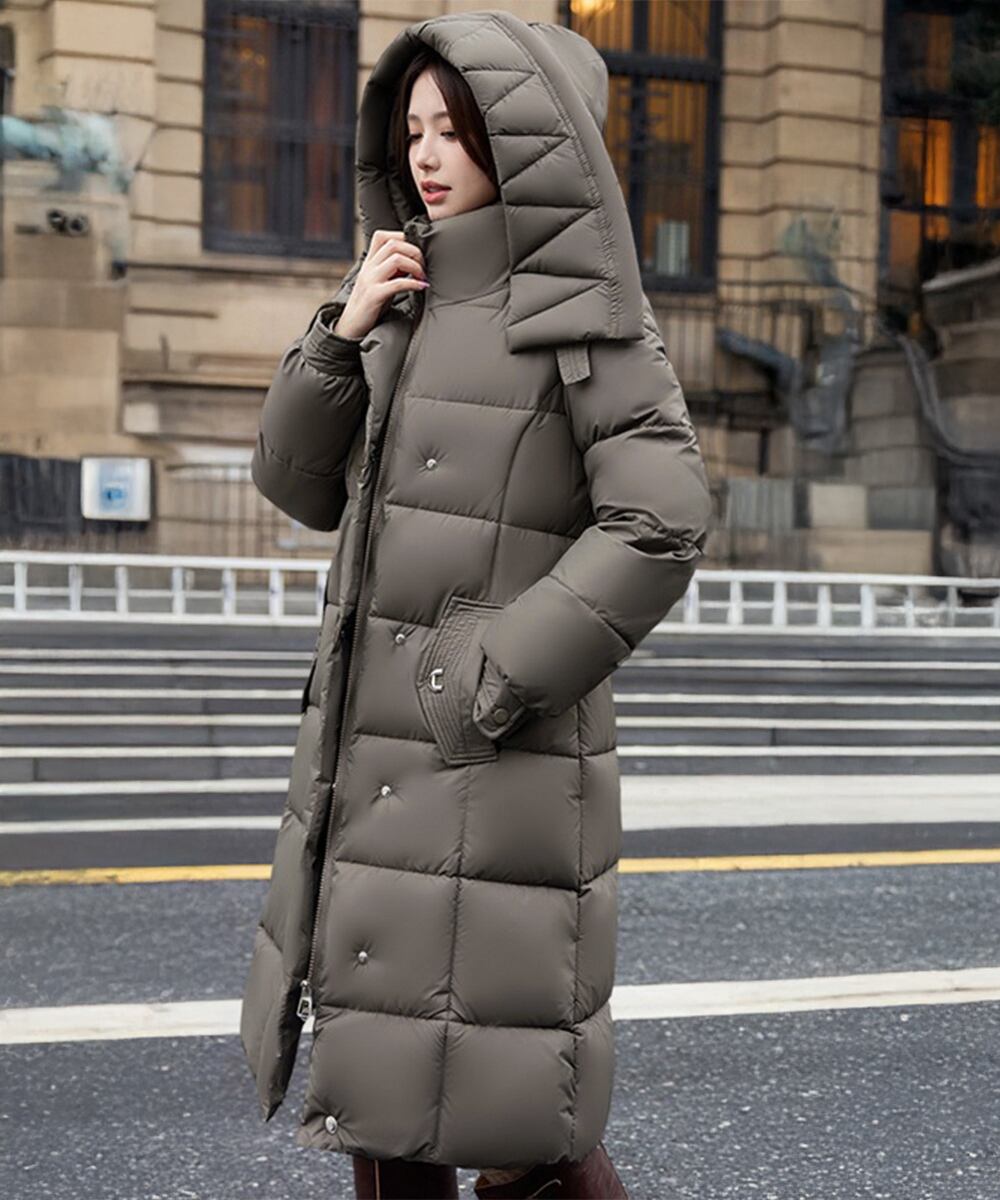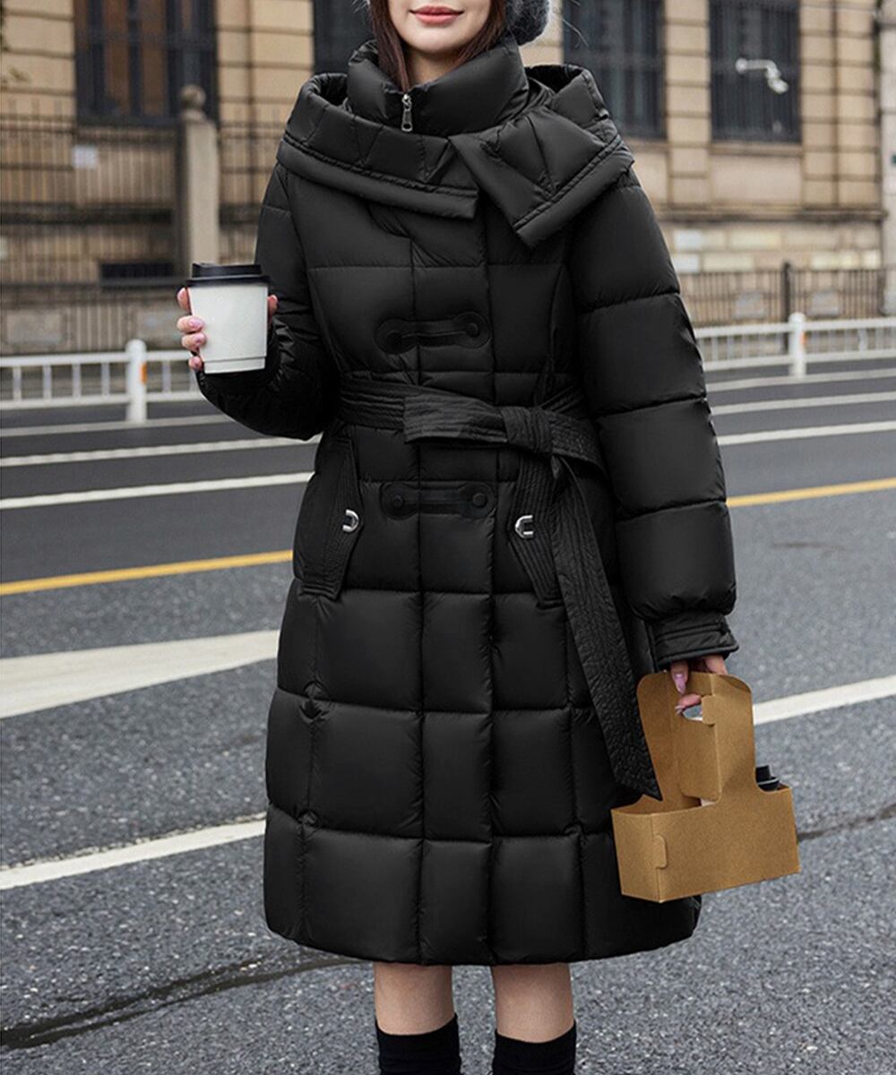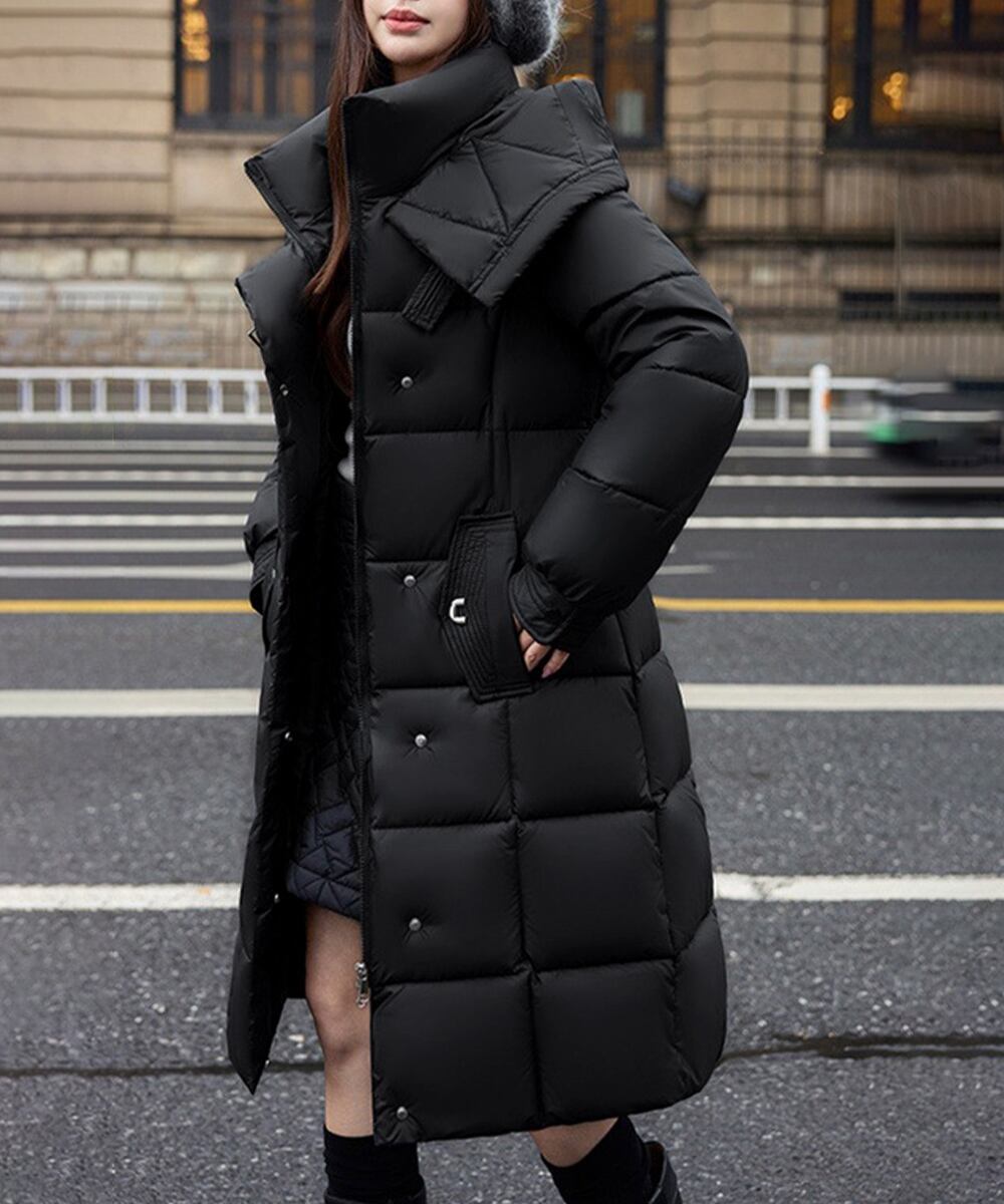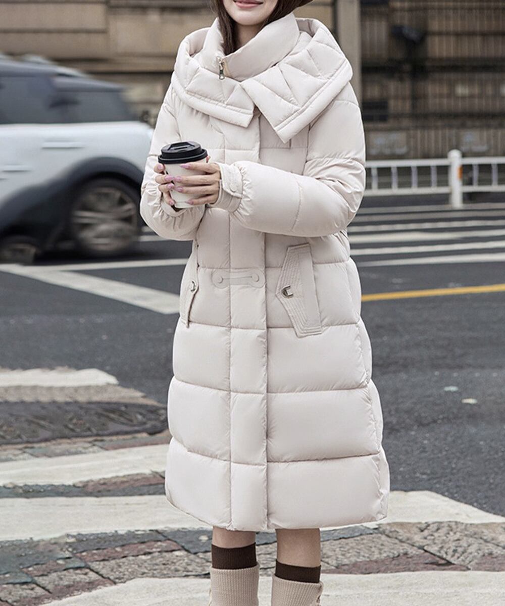 暖かさとデザイン性を兼ね備えたロング丈の中綿ダウンコート。