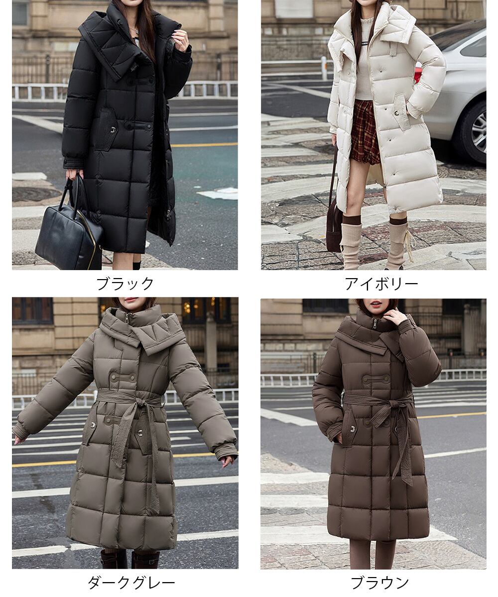韓国風中綿ロングコード レディース 厚手防寒アウター 大人カジュアル キルティングコートウエストマーク 冬アウター立ち襟