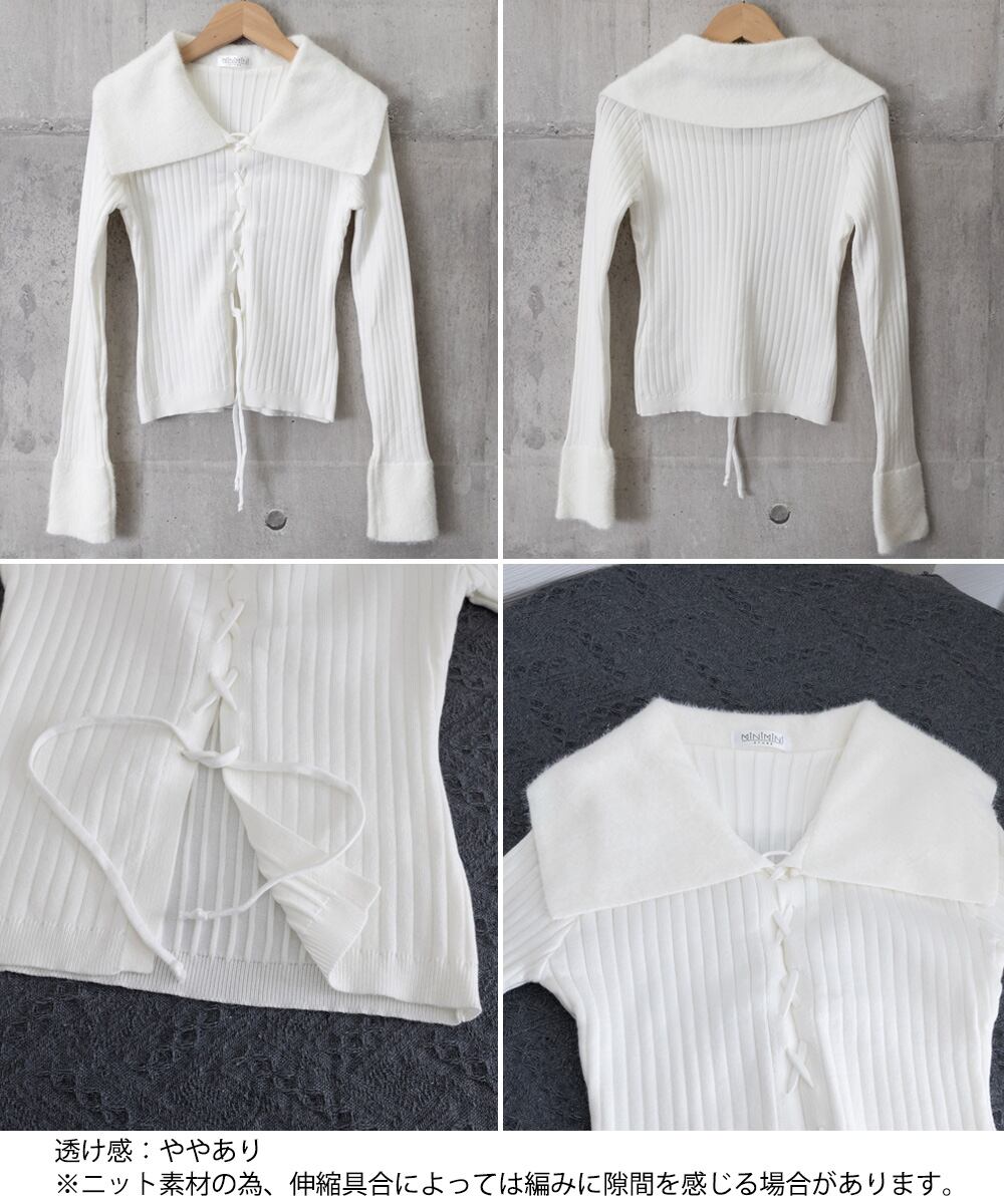 【日本倉庫からの発送】 レースアップ リブニットトップス 着やせ #[1YGL-004_20800]【送料込み】【251210】