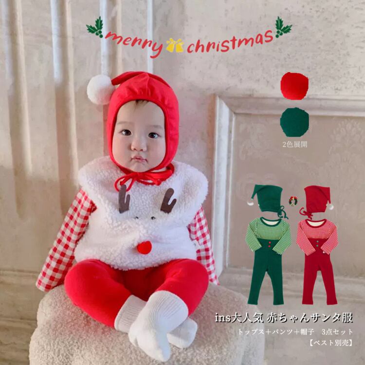【海外からの取り寄せ】ins サンタ服 ベビー服 クリスマス 長袖Tシャツ パンツ 帽子 3点セット 秋冬 可愛い #[ckd1091214_18800]【送料込み】【251210】