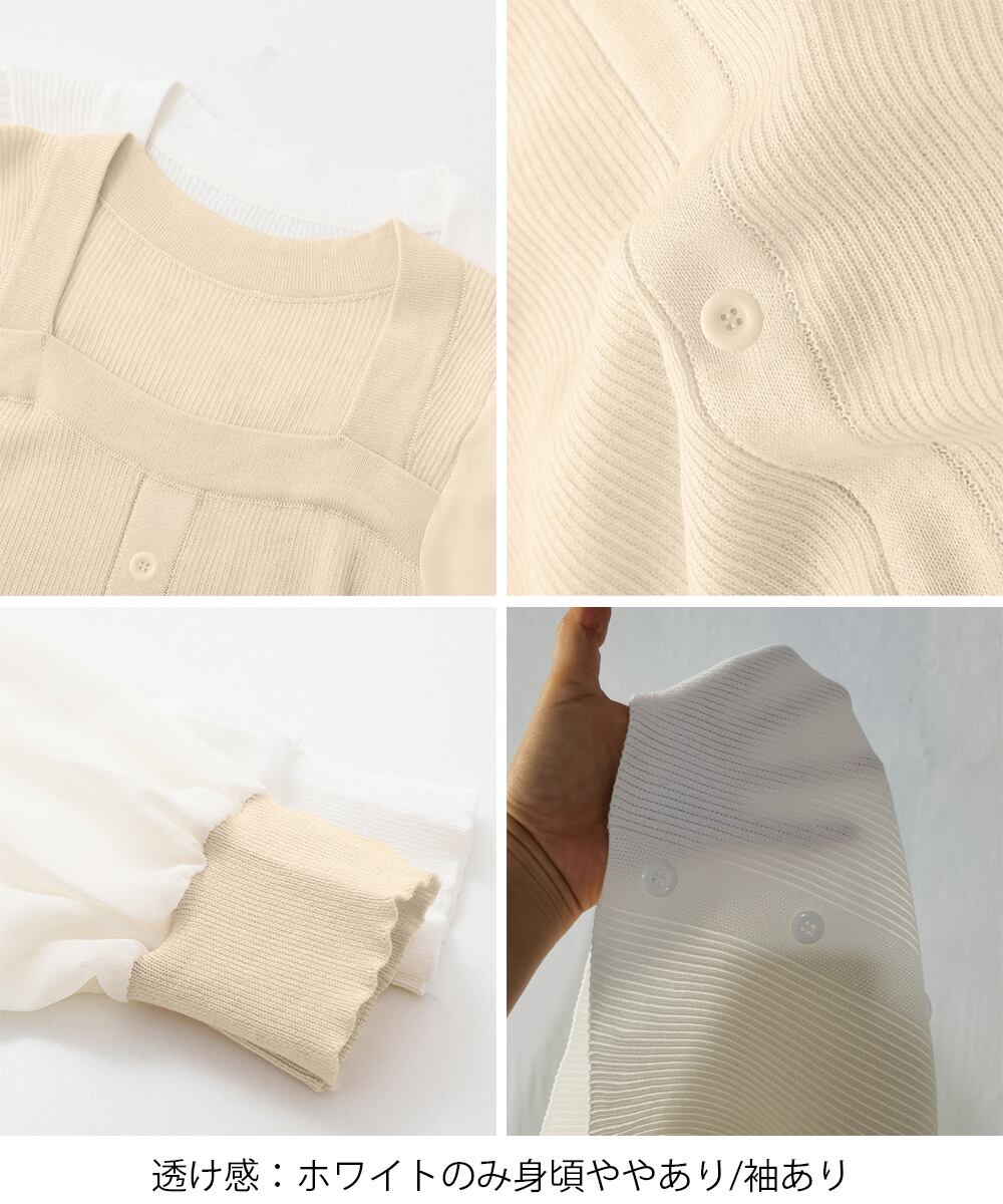 透け感:ホワイトのみ身頃ややあり/袖あり