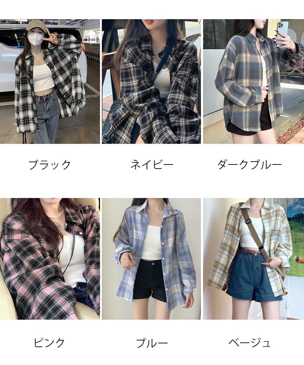 韓国風レトロデザインのオーバーサイズチェックシャツ。