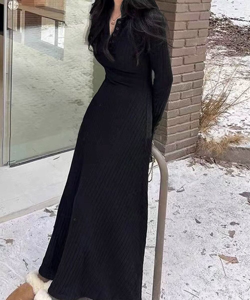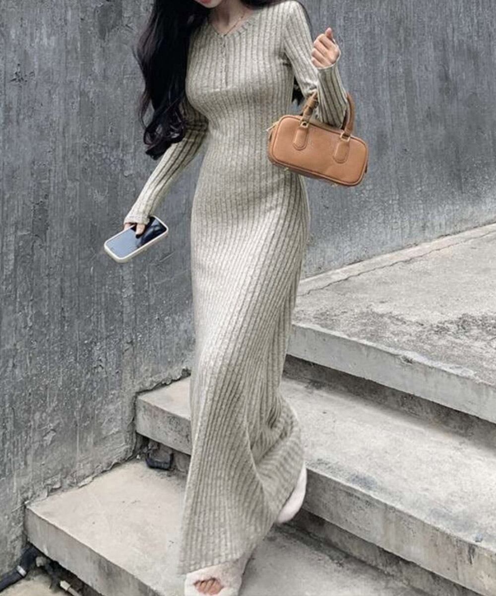 【日本倉庫からの発送】 リブニットワンピース 長袖 ロングワンピ #[83JXX-001_18600]【送料込み】【251210】