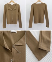 立体的な襟デザインが印象的なニットトップス。