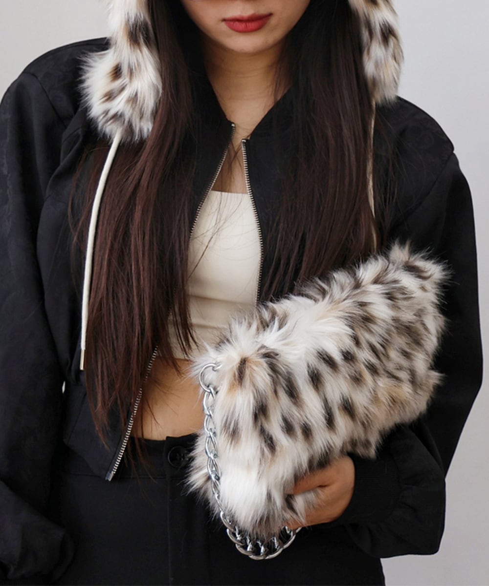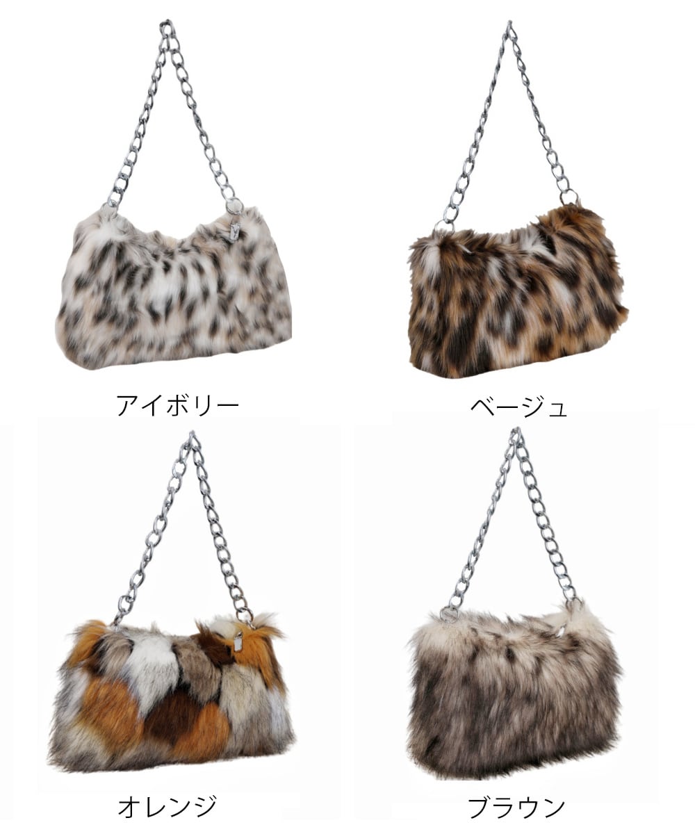 ボリュームフェイクファー チェーン肩掛けバッグ レディース おしゃれ手提げカバン レオパード柄 ふわふわ鞄 ハンドバッグ