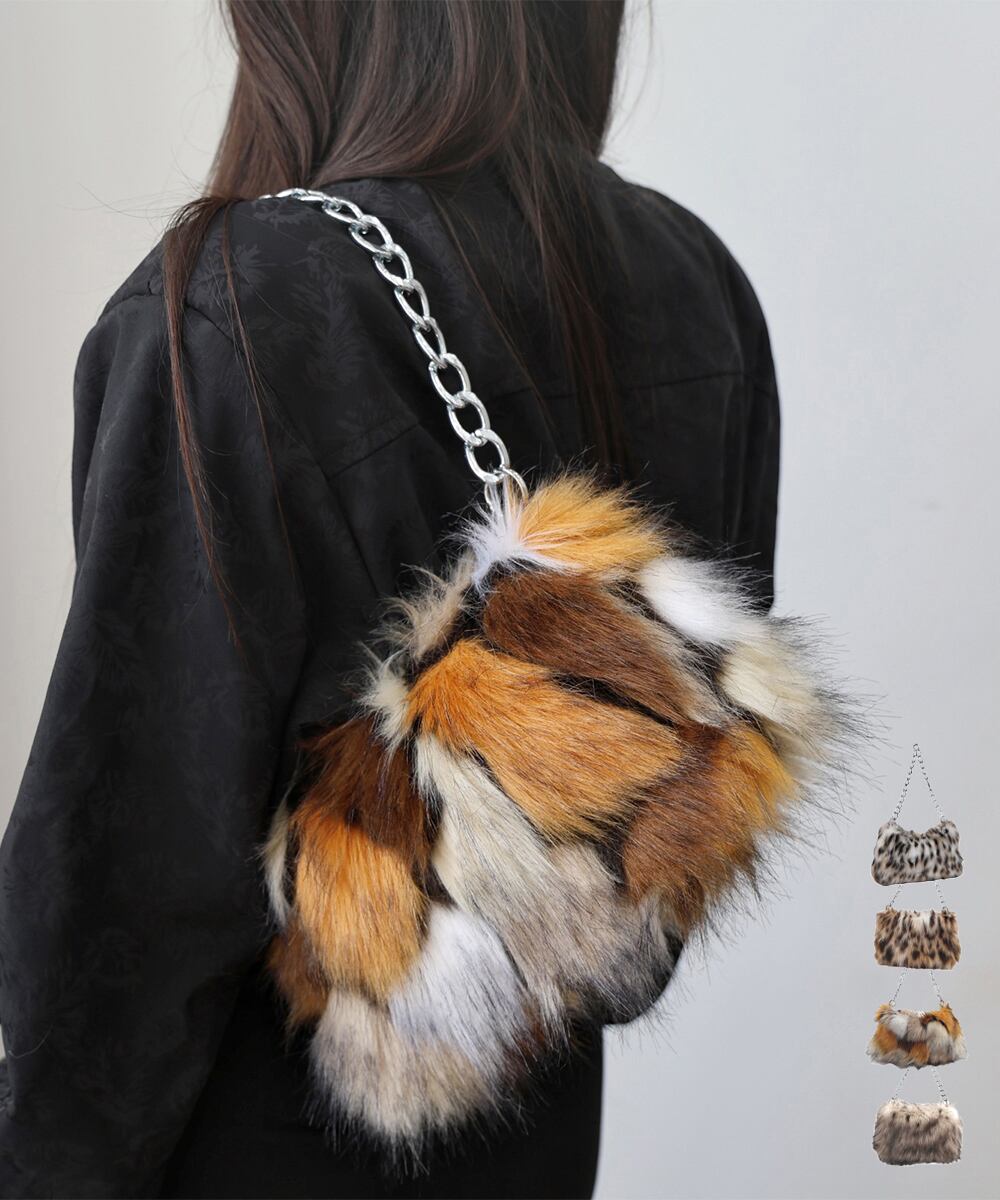 カラーファーが目を惹くチェーンショルダーバッグ。