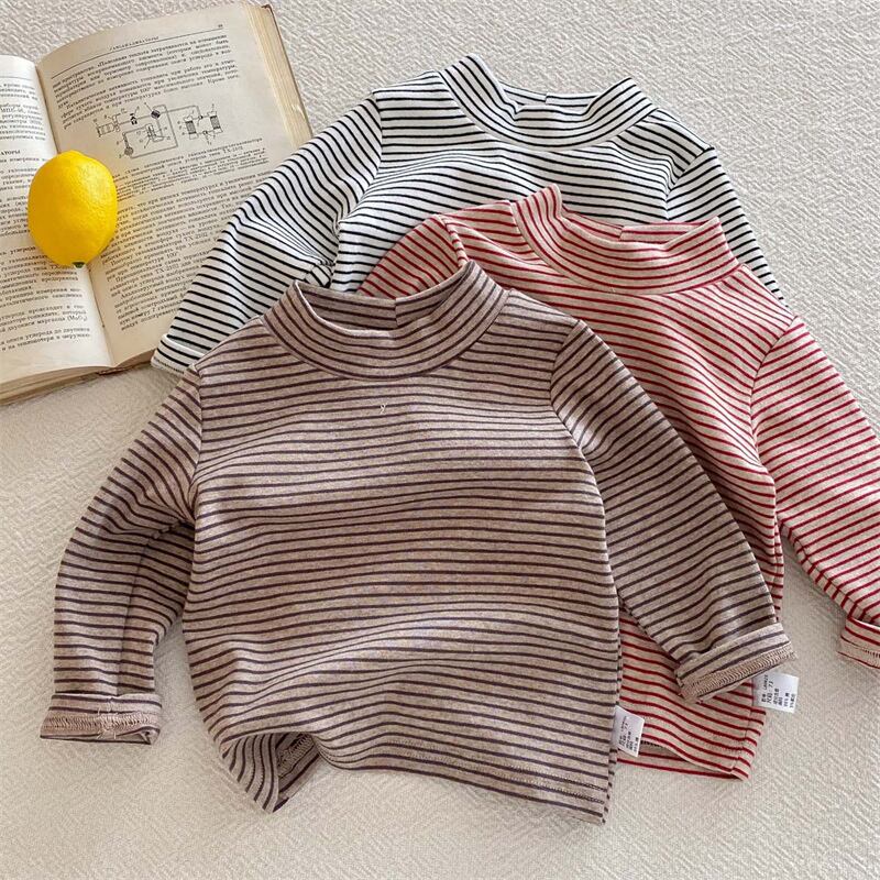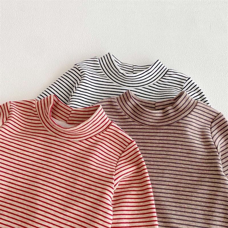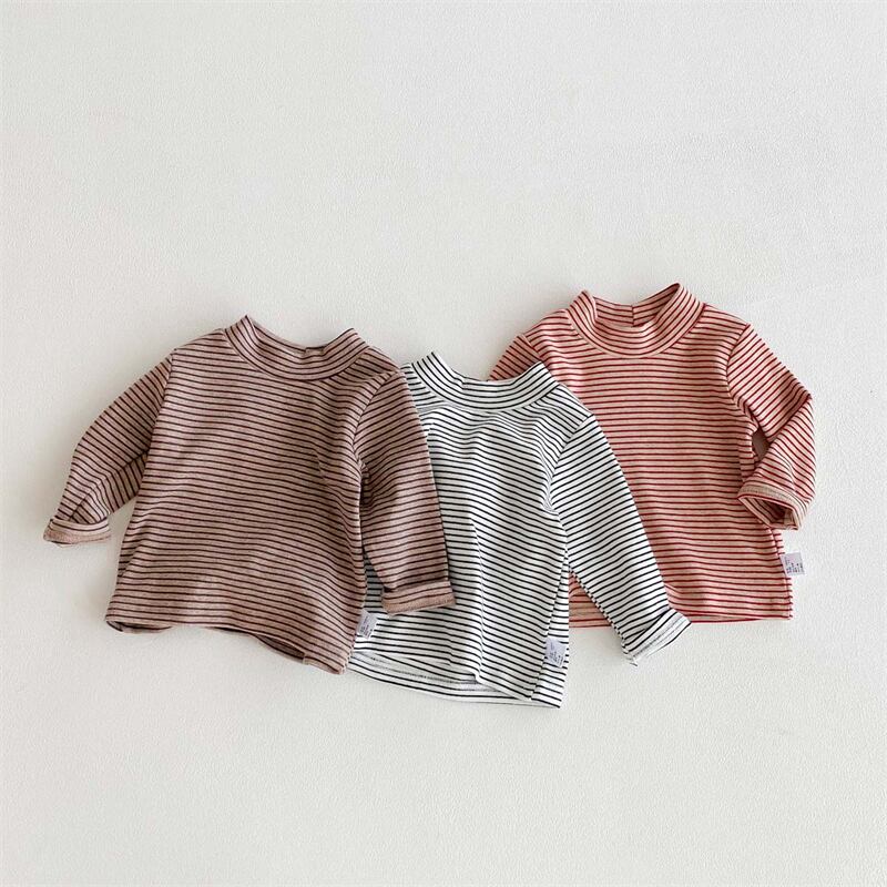 【海外からの取り寄せ】ins 秋冬新作 子供服 ユニセックス ハイネック 長袖Tシャツ カジュアル トップス ストライプ柄 #[ckd1095336_10000]【送料込み】【260131】