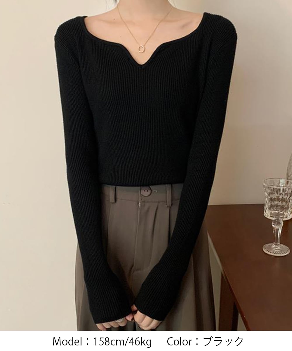 【日本倉庫からの発送】 キーネック タイトリブニット 韓国風 #[85YN-900612_18200]【送料込み】【251210】