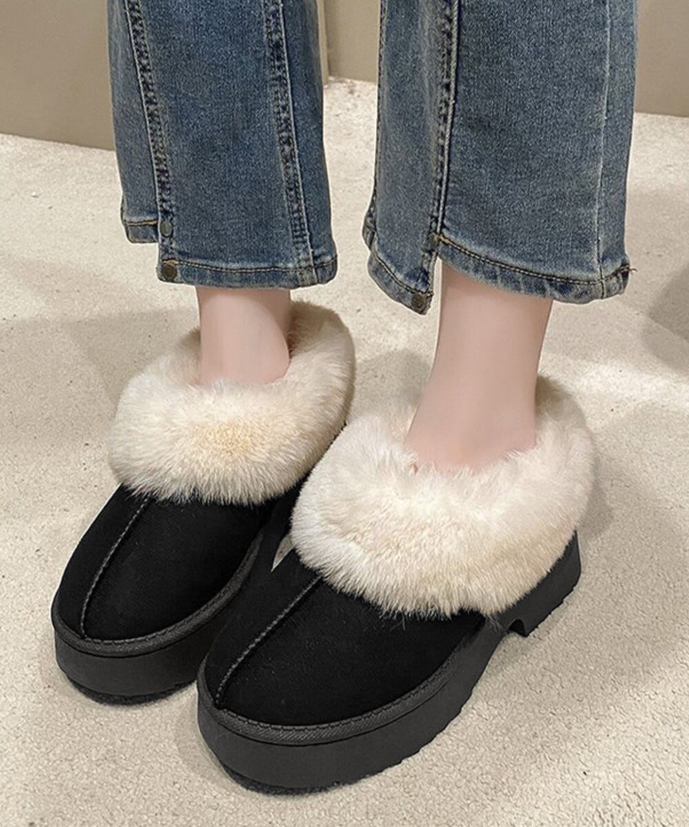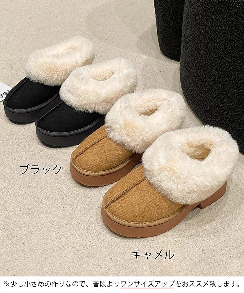 ボリュームファー ショートブーツ もこもこムートンシューズ 暖かい冬ブーツ カジュアル 美脚ボアシューズ あったか防寒靴