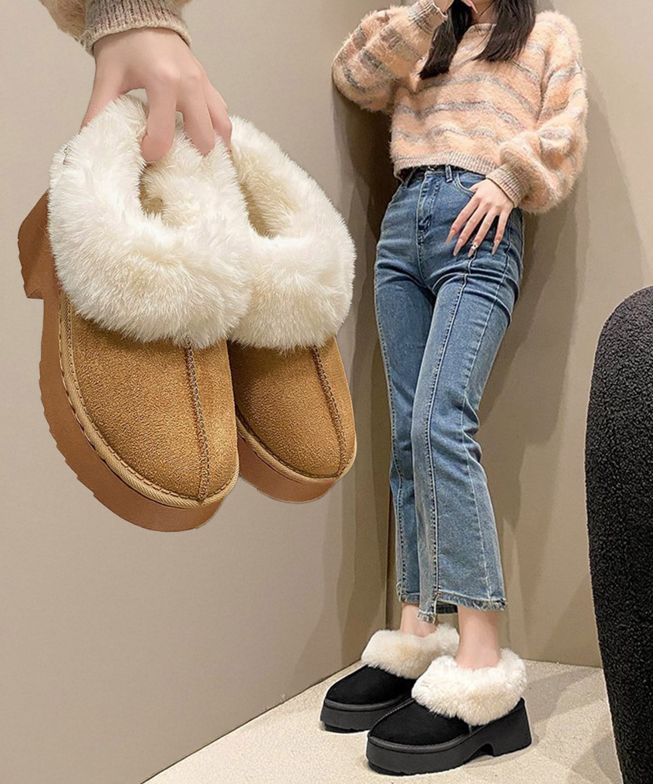 厚底ブーツふわふわ