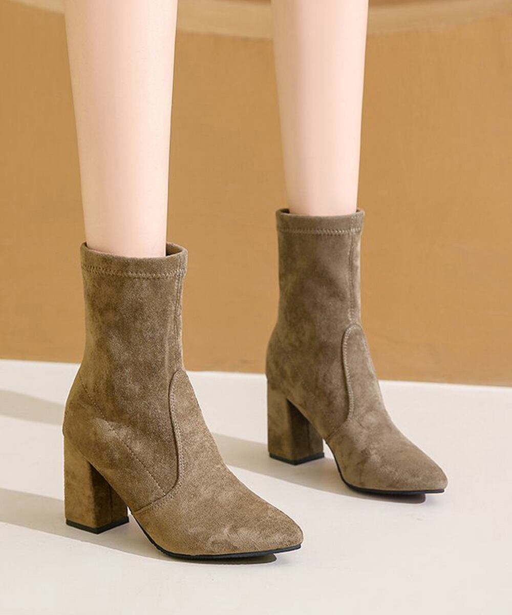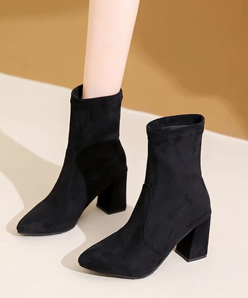 ポインテッドトゥ ブーティー美脚脚長 チャンキーヒール ミドルブーツ秋冬 レディース 太ヒール靴 歩きやすいブーツ高級感
