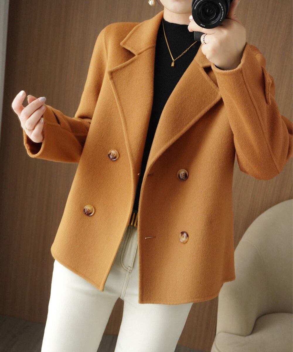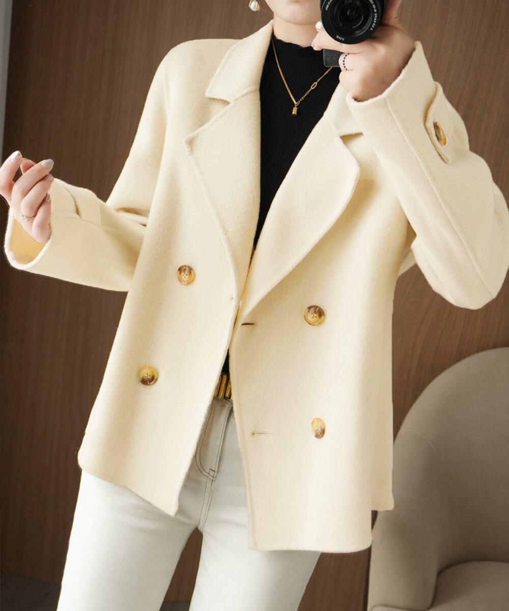 【日本倉庫からの発送】 ウールタッチダブルブレストショートコート #[6QINGROU-009_30200]【送料込み】【260128】