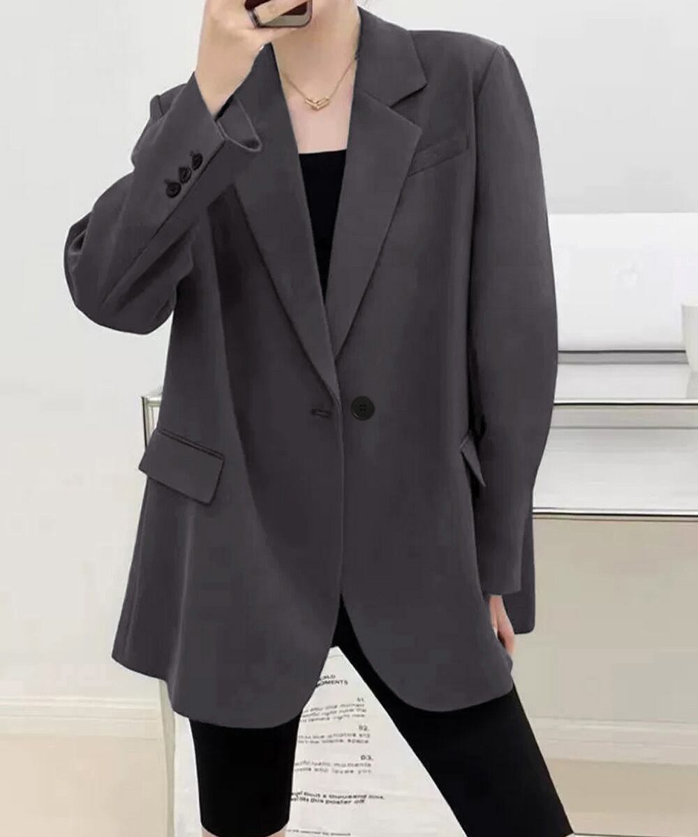 1つボタン韓国風ジャケット 春夏秋軽アウター おしゃれ ベーシックスーツジャケット 通勤ライトアウターオフィスカジュアル