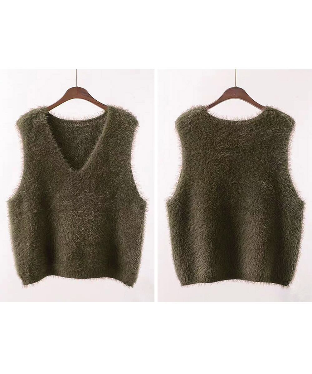 【日本倉庫からの発送】 Vネック起毛フェザーニットベストふわふわ #[6HUANYI-001_23800]【送料込み】【251210】
