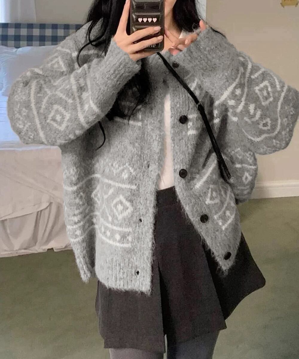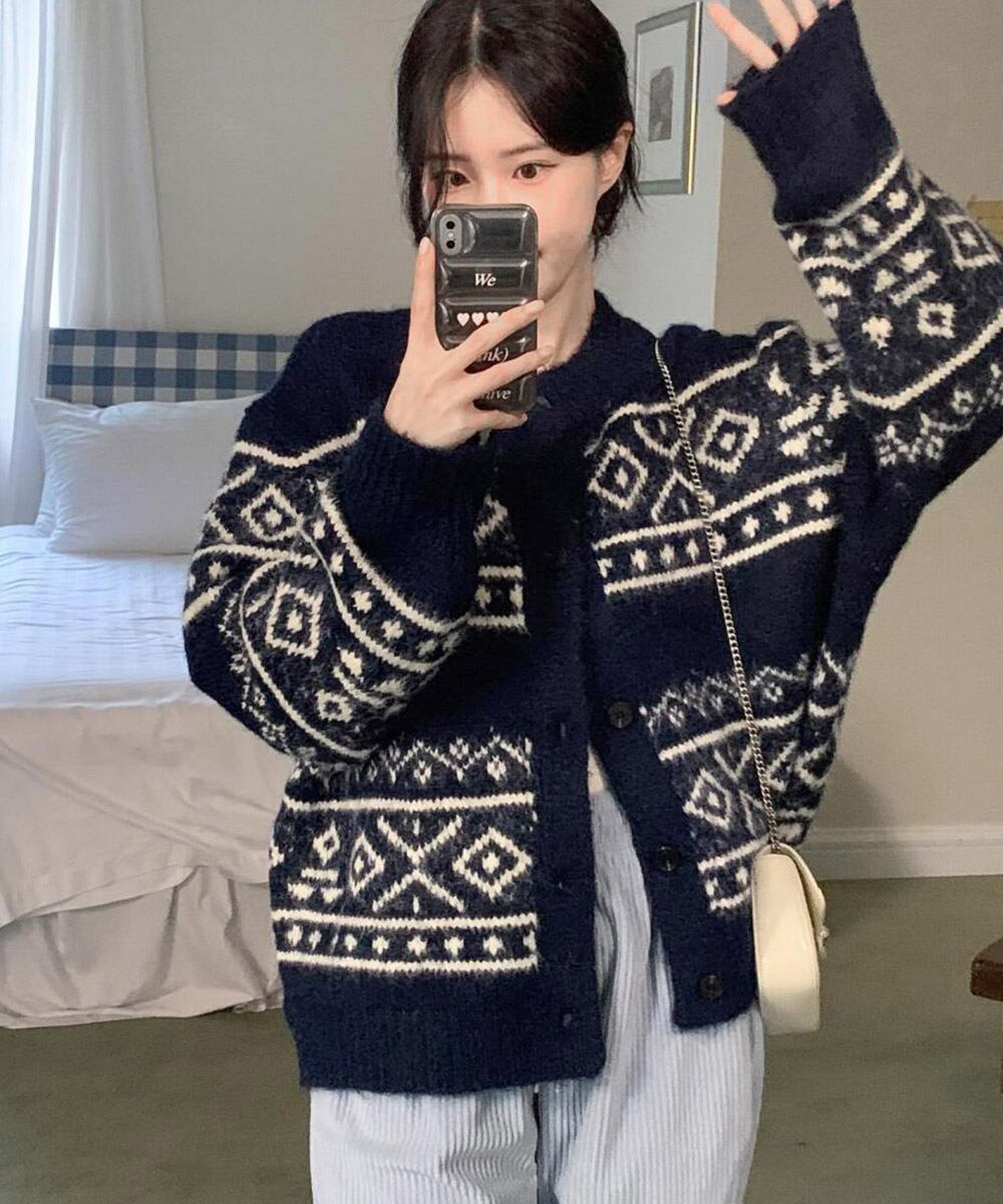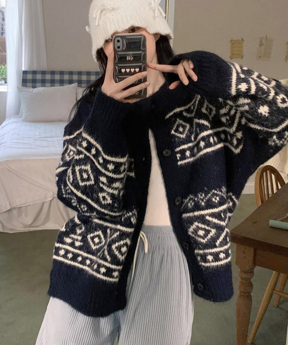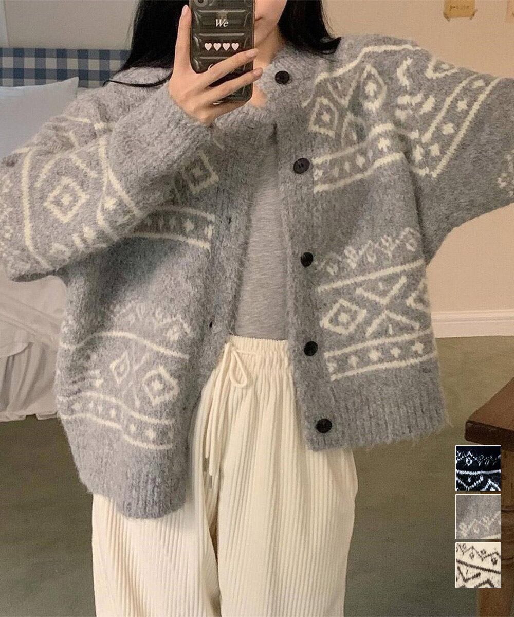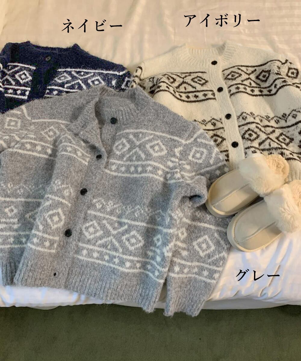 【日本倉庫からの発送】 ノルディック柄ニットカーディガン 北欧風 #[1MRJ-013_28300]【送料込み】【260128】