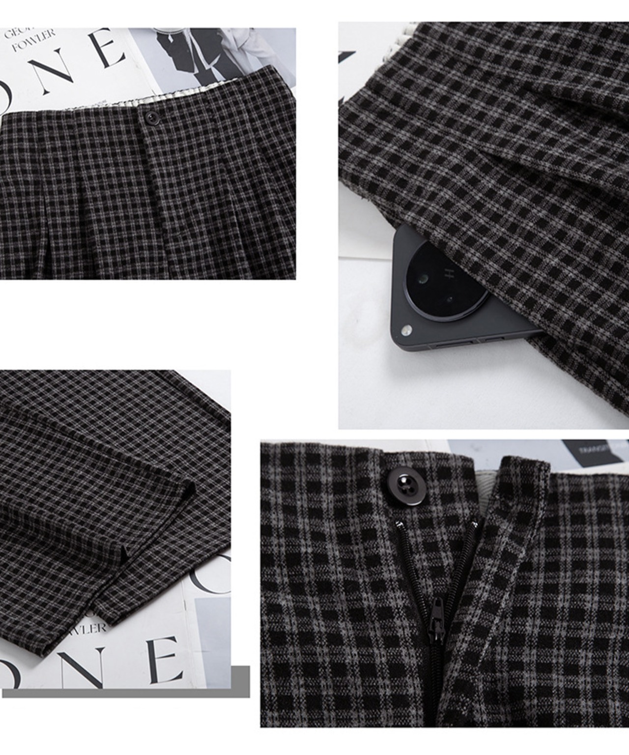 【日本倉庫からの発送】 チェック柄ワイドパンツハイウエスト 秋冬 #[92YYFS-001_24600]【送料込み】【251210】