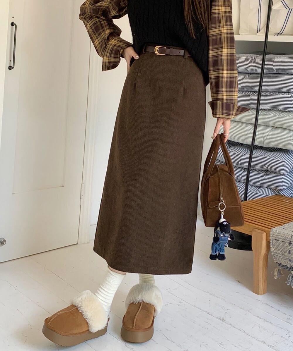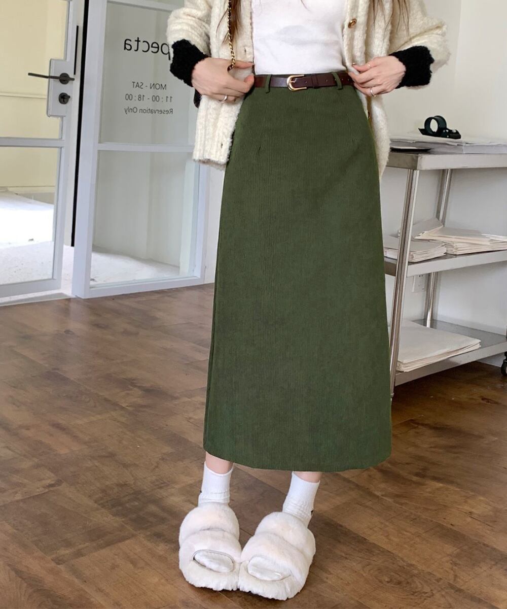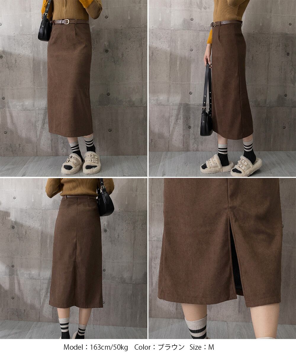 【日本倉庫からの発送】 コーデュロイタイトスカート ベルト付き #[24SKT-006_22800]【送料込み】【260128】