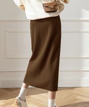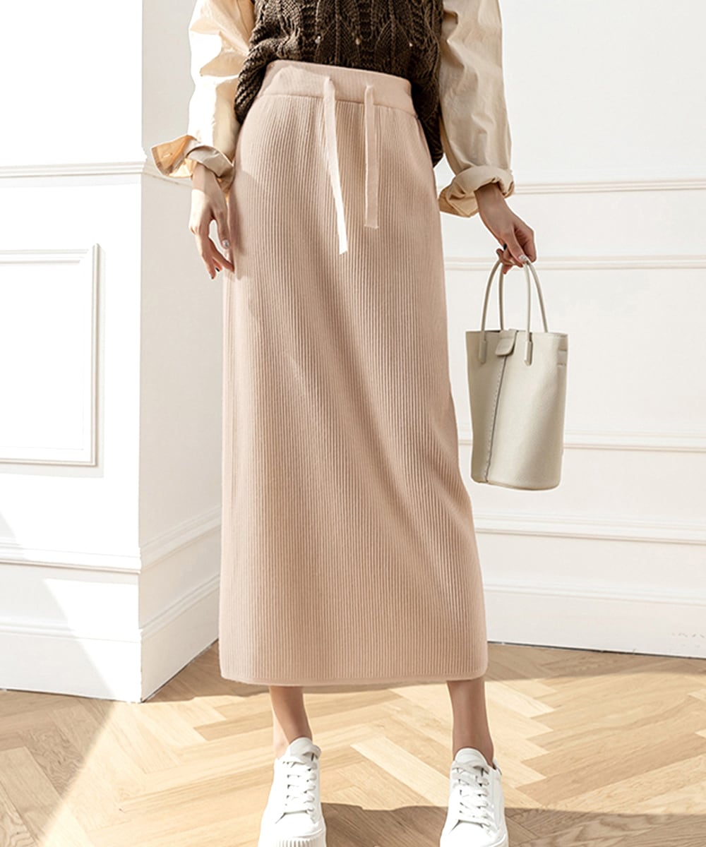 やわらかな風合いのリブニットで仕立てたロングスカート。