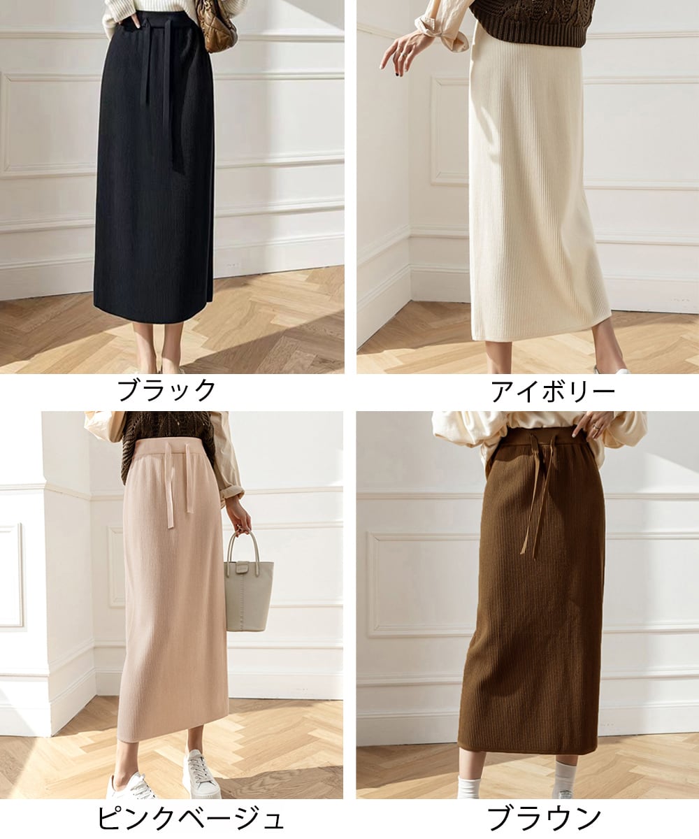 レディースニットスカート 無地 オフィスカジュアル リブニット 伸縮性 着やせ ウエストゴム タイトスカート ベーシック