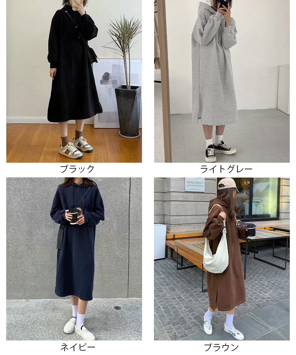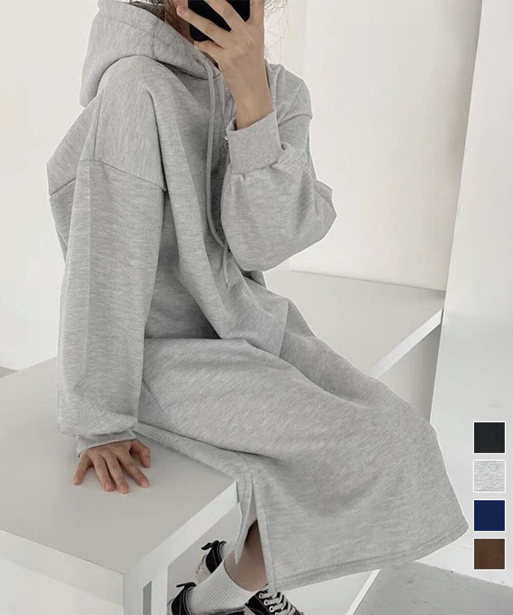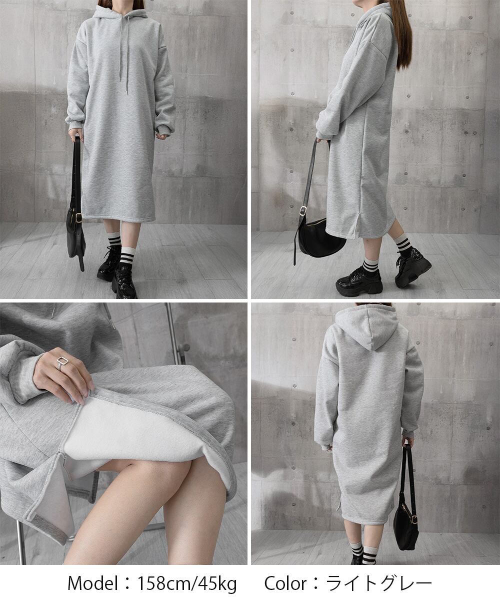 【日本倉庫からの発送】 裏起毛 ロングパーカーワンピース 着やせ #[83JIXI-002_18600]【送料込み】【251210】