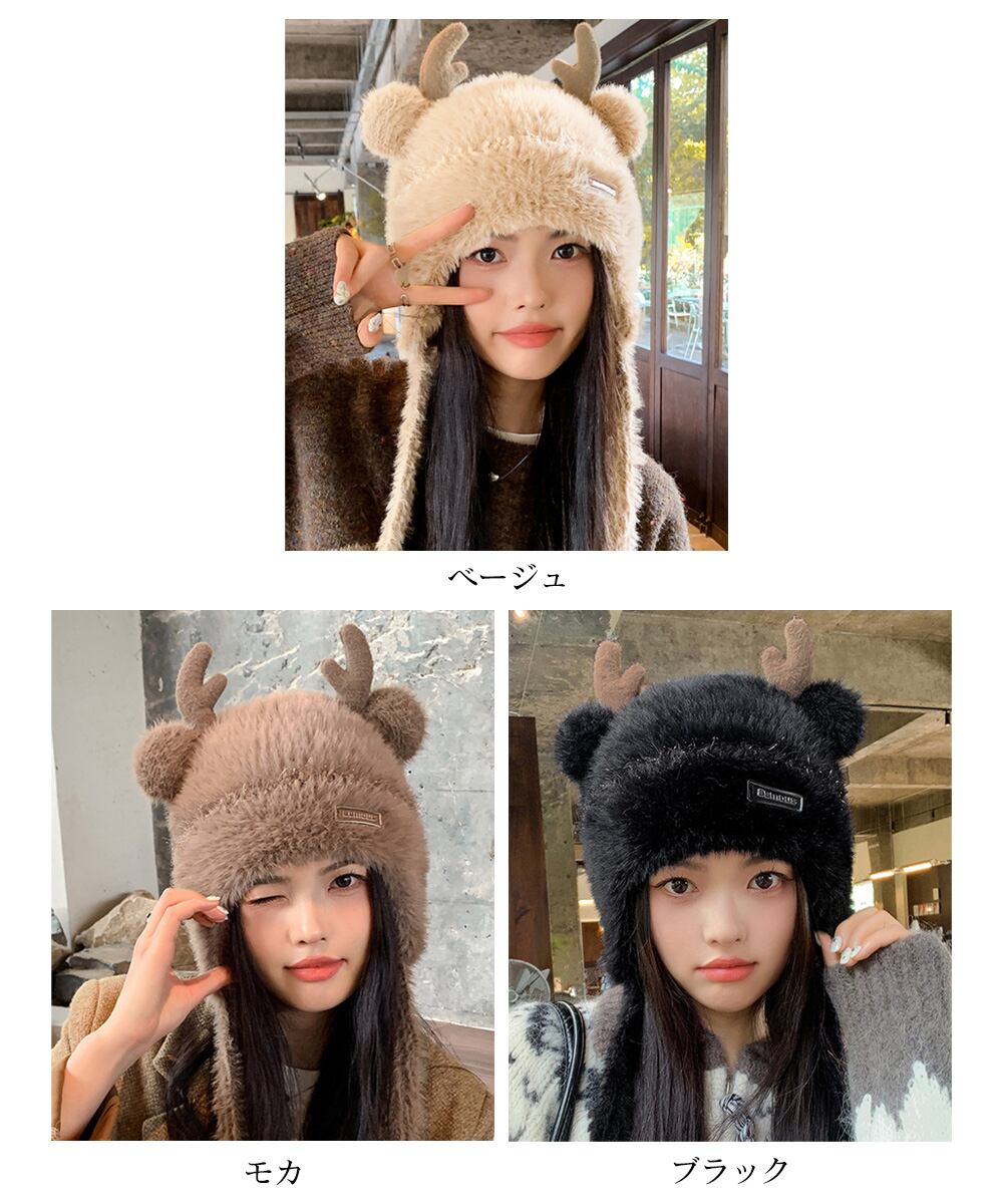 【日本倉庫からの発送】 ニット帽 鹿角 くま耳 レディース 秋冬 #[99BJMY-003_13500]【送料込み】【260128】