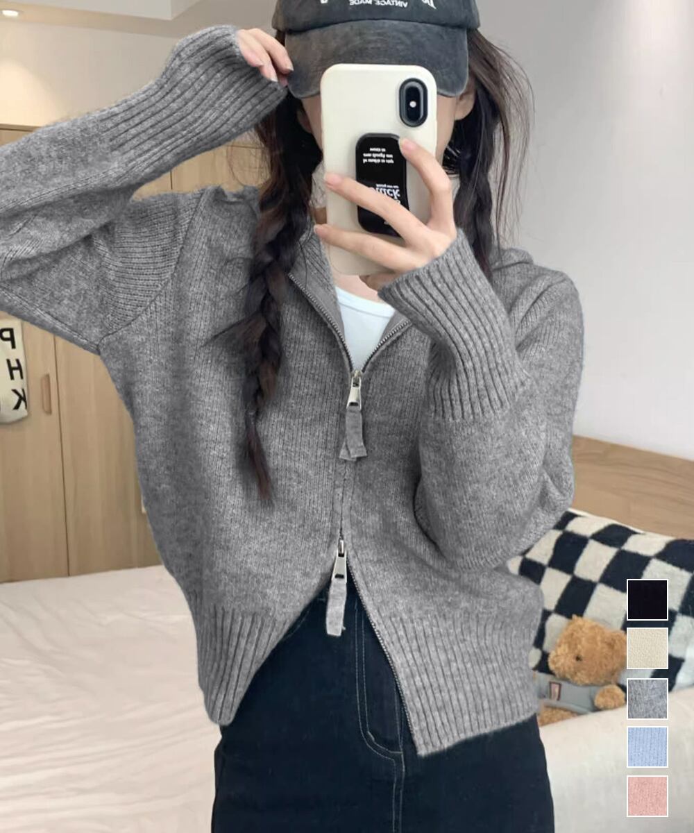 【日本倉庫からの発送】 ダブルジップリブニットカーディガン韓国風 #[92MRJFS-006_23800]【送料込み】【251210】