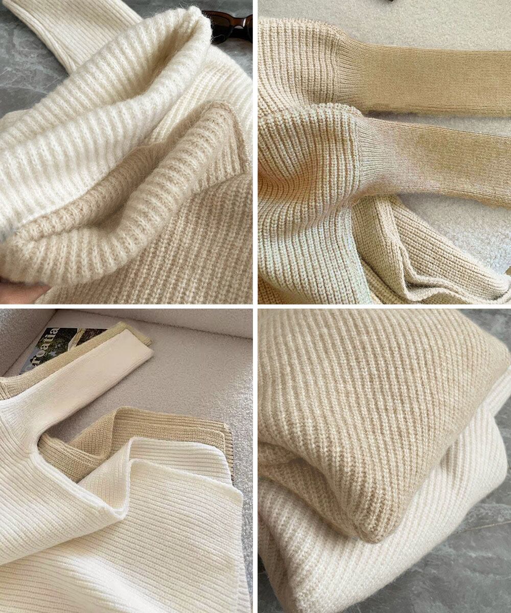変形デザインニット 斜めカットニット冬 あったか厚手ニット