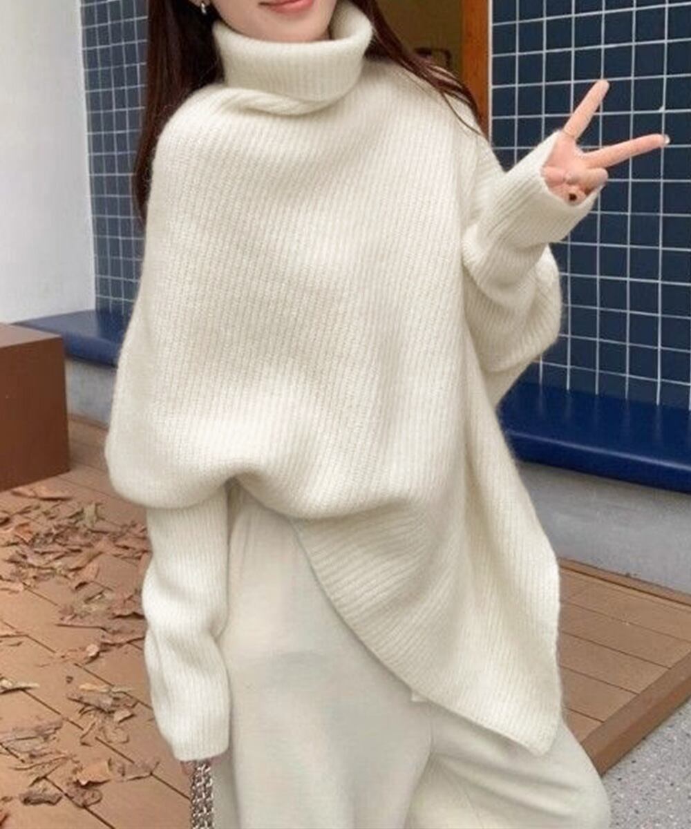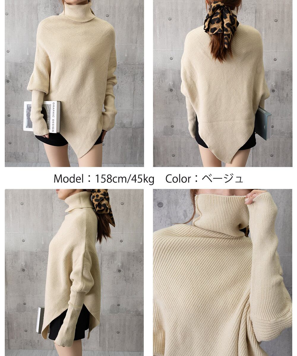 タートルネックニットレディース長袖ニットトップス秋冬 ドルマンスリーブプルオーバー体型カバーアシンメトリーセーター韓国風