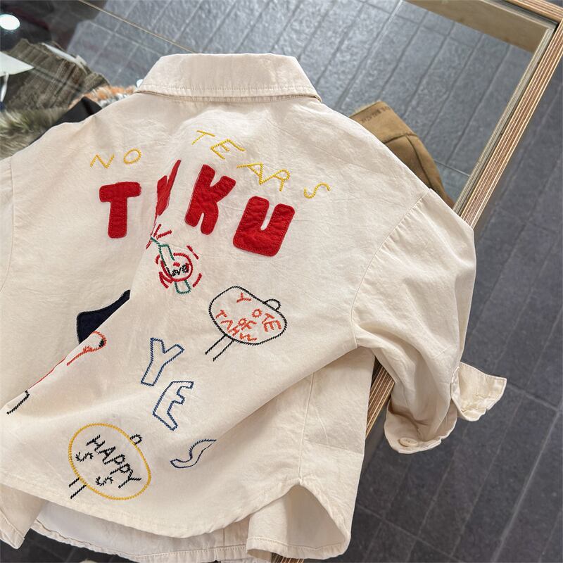 【海外からの取り寄せ】2026春新作 子供服 キッズ 英字 刺繍 長袖シャツ カジュアル トップス 可愛い おしゃれ 2色 #[ckd1095395_27500]【送料込み】【260131】