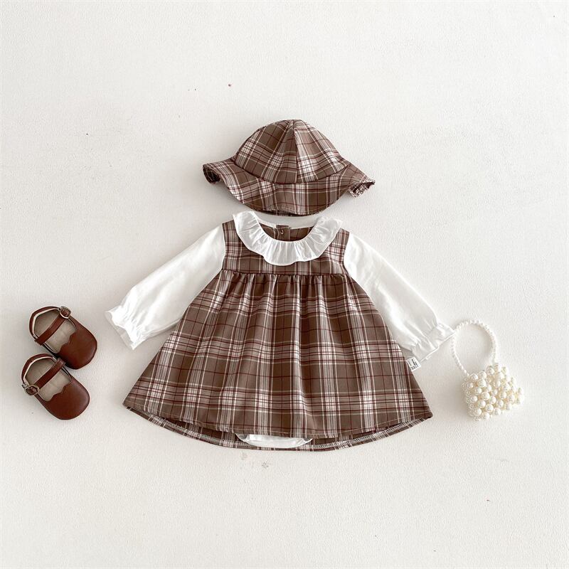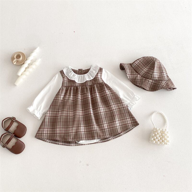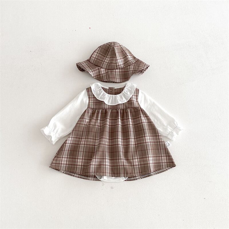 【海外からの取り寄せ】2026春新作 子供服 フェイクレイヤード 帽子付き ロンパース 可愛い 女の子 格子 カバーオール #[ckd1095370_18100]【送料込み】【260131】