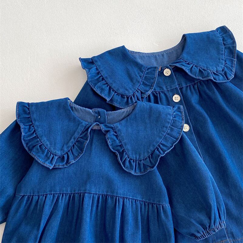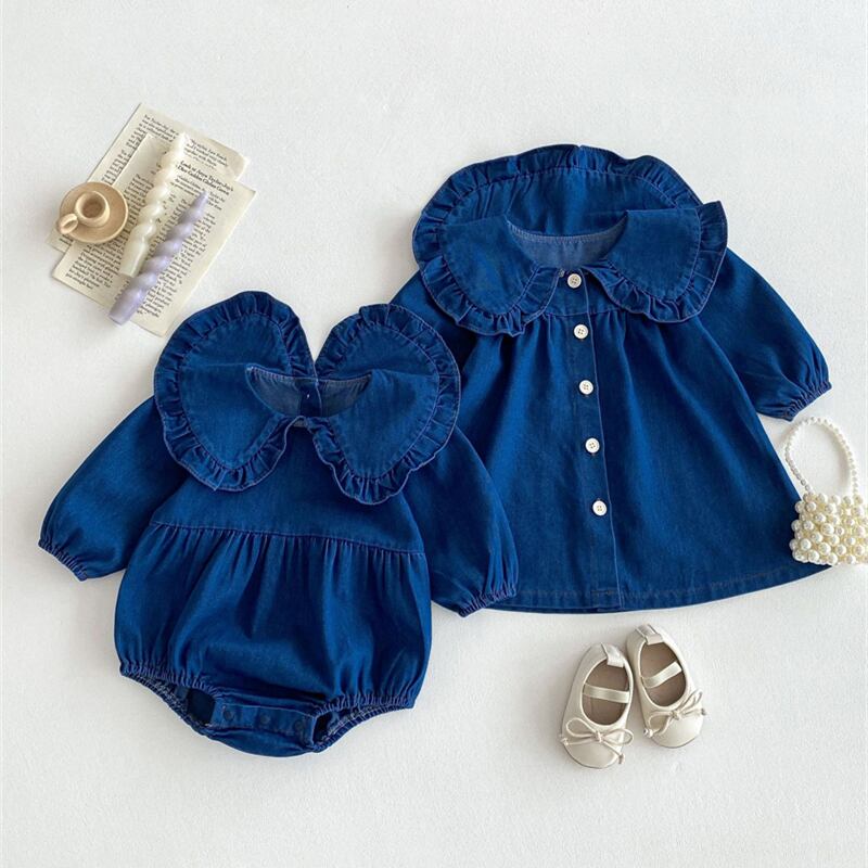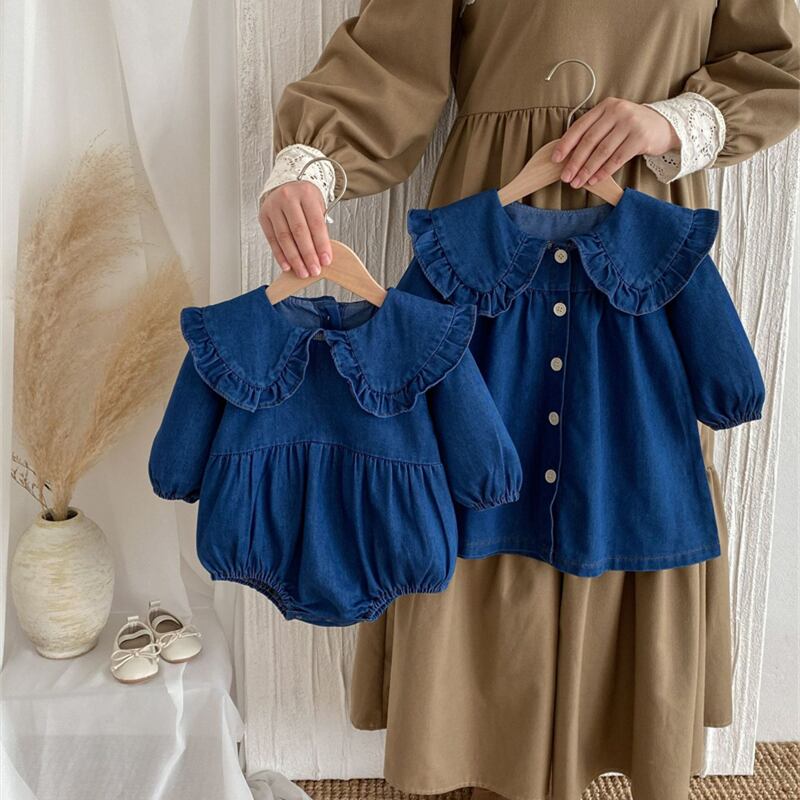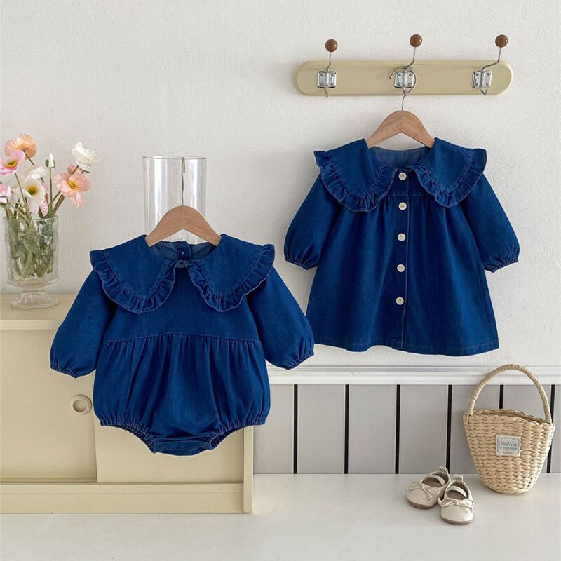 【海外からの取り寄せ】ins 春新作 子供服 姉妹お揃い 選べる2タイプ デニム 長袖 大きな襟 ロンパース ワンピース 女児 #[ckd1095354_19600]【送料込み】【260131】