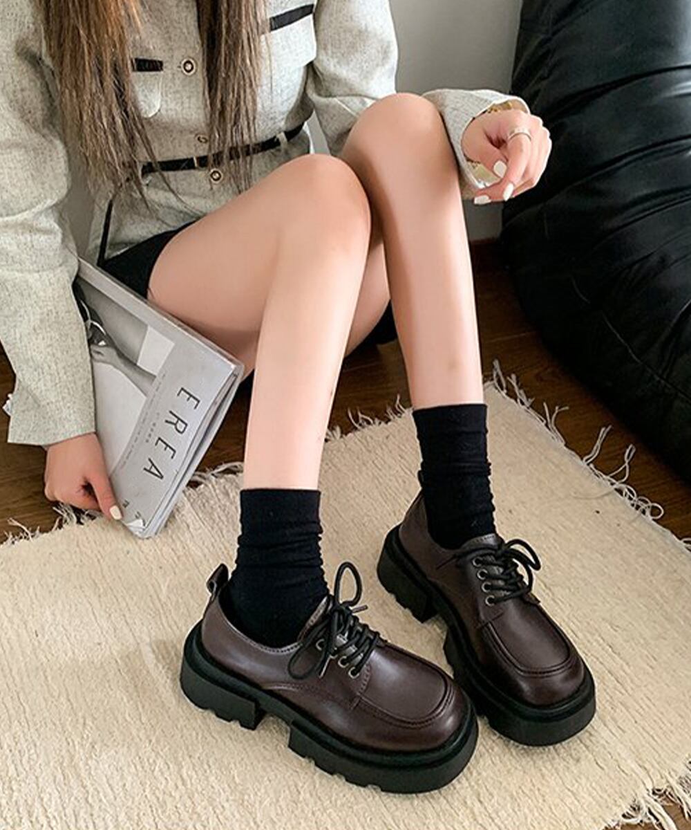【日本倉庫からの発送】 厚底ローファー レースアップシューズ #[99YYXC-058_20300]【送料込み】【260128】