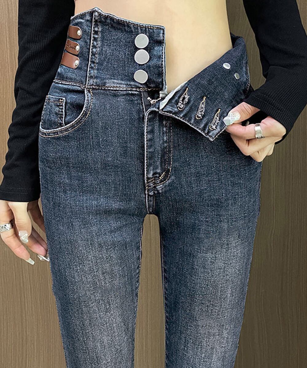 ハイウエストデニムパンツ 3ボタンジーンズ レディース ストレッチジーパン ヴィンテージ カジュアル美脚脚長ボトムスリム