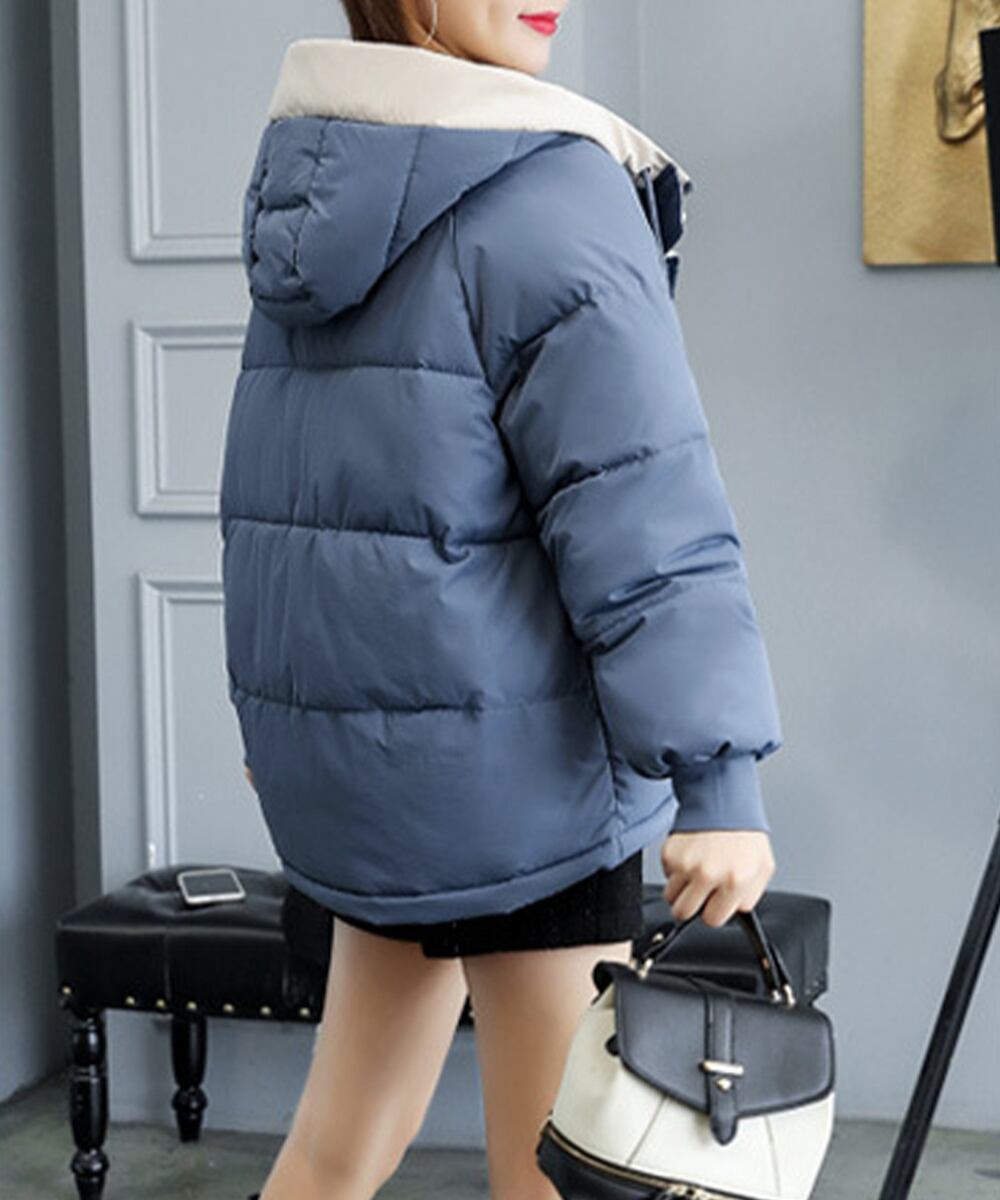 バイカラーエコダウンジャケット 韓国風フェイクダウンコート 暖かブルゾン 防寒防風キルティングジャケットフーディアウター