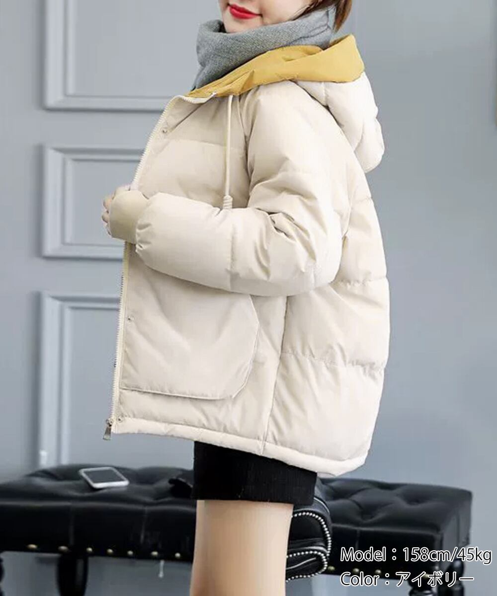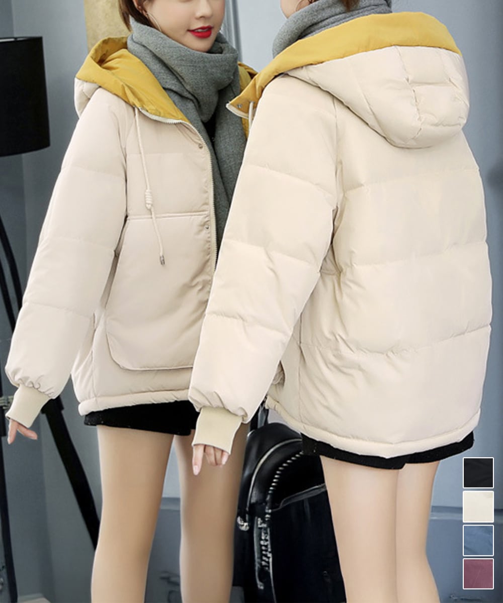 【日本倉庫からの発送】 配色フード付き中綿ジャケットレディース冬 #[92MINGLI-002_29800]【送料込み】【260128】