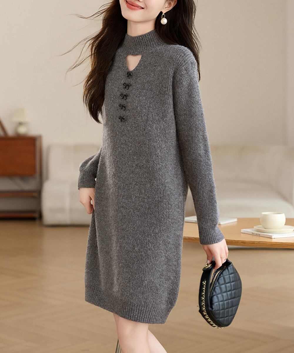 【日本倉庫からの発送】 胸元セクシーニットワンピース リボン付き #[90HYHT-005_33600]【送料込み】【260128】