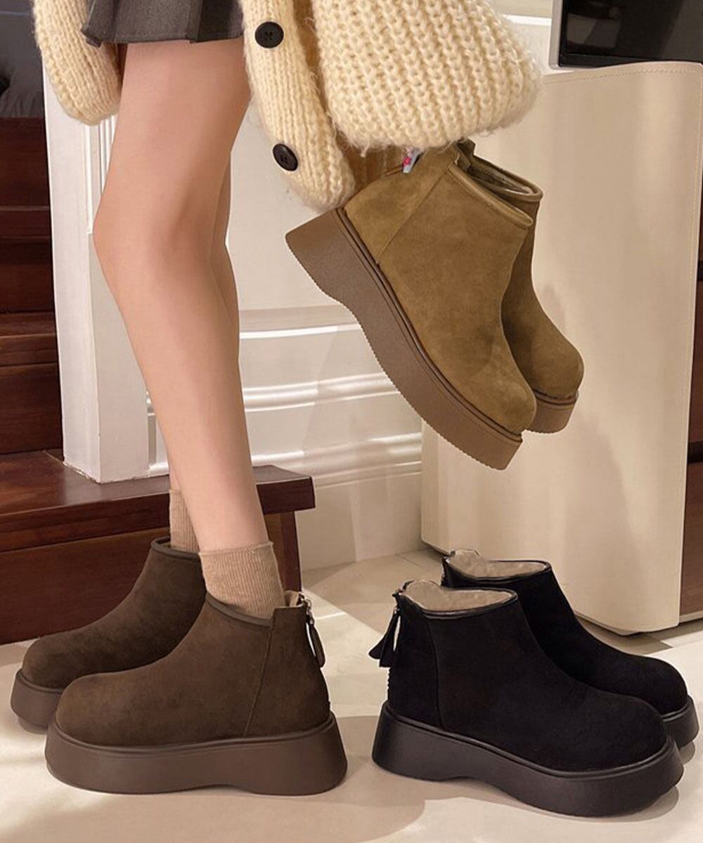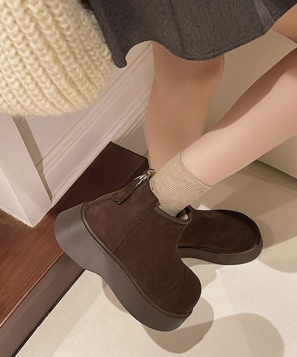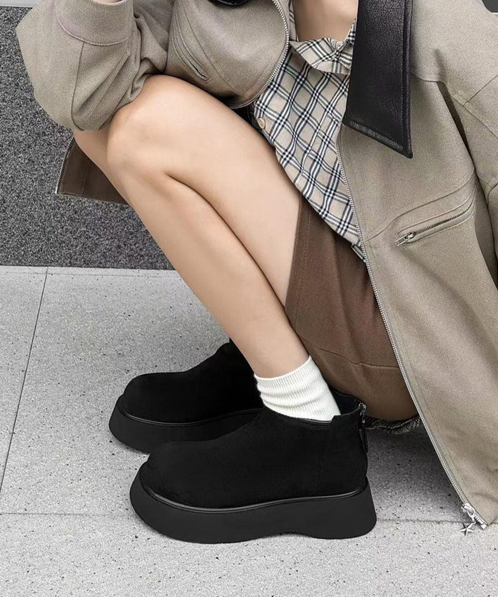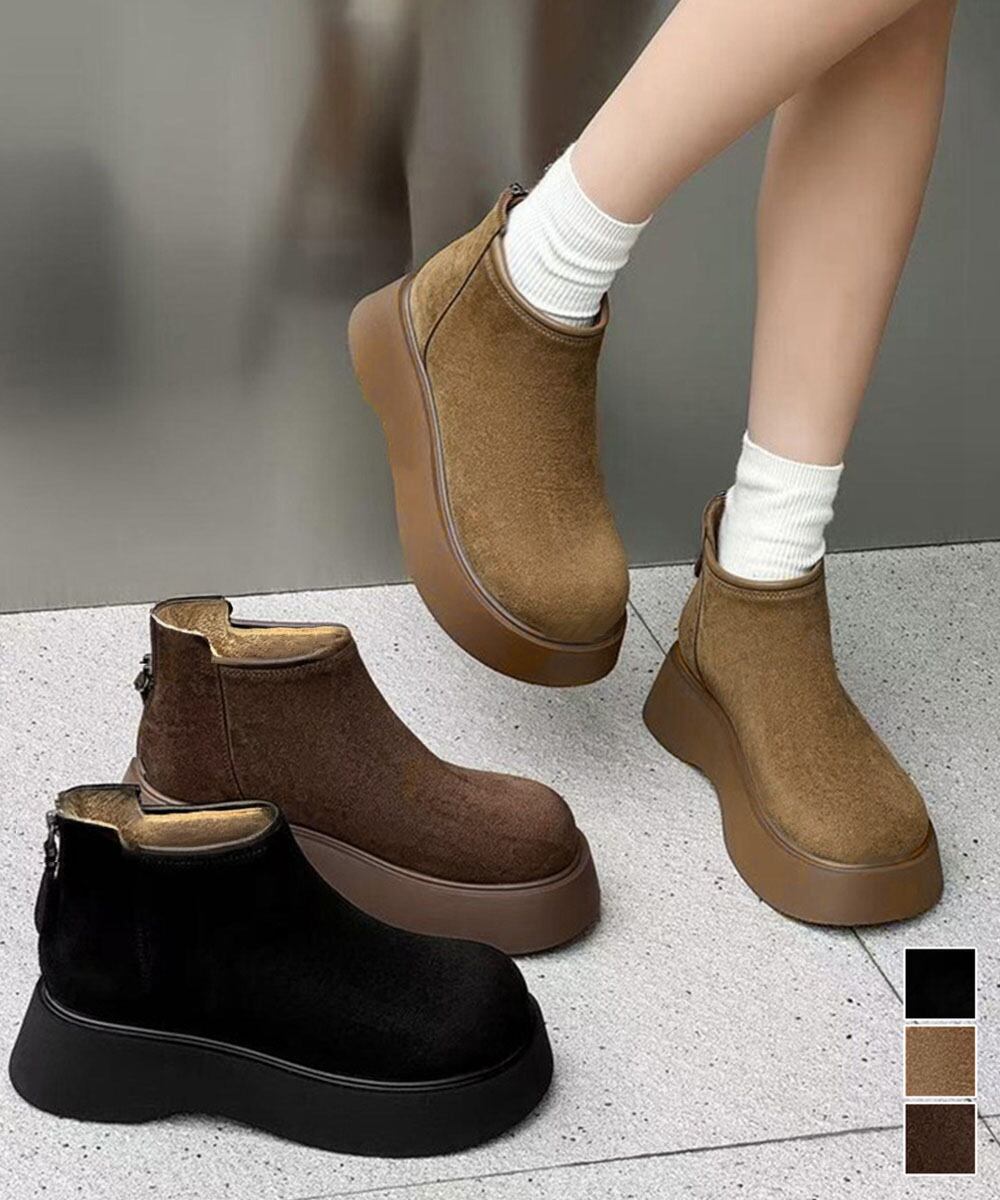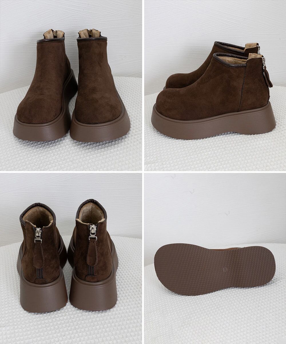 【日本倉庫からの発送】 スエードタッチ厚底ショートブーツ 裏起毛 #[1JL-007_28300]【送料込み】【260128】