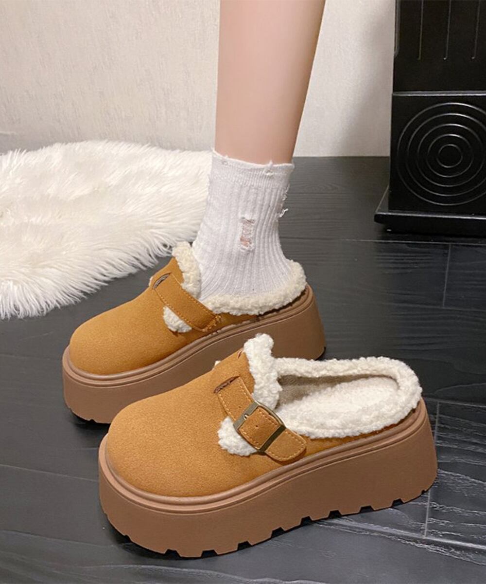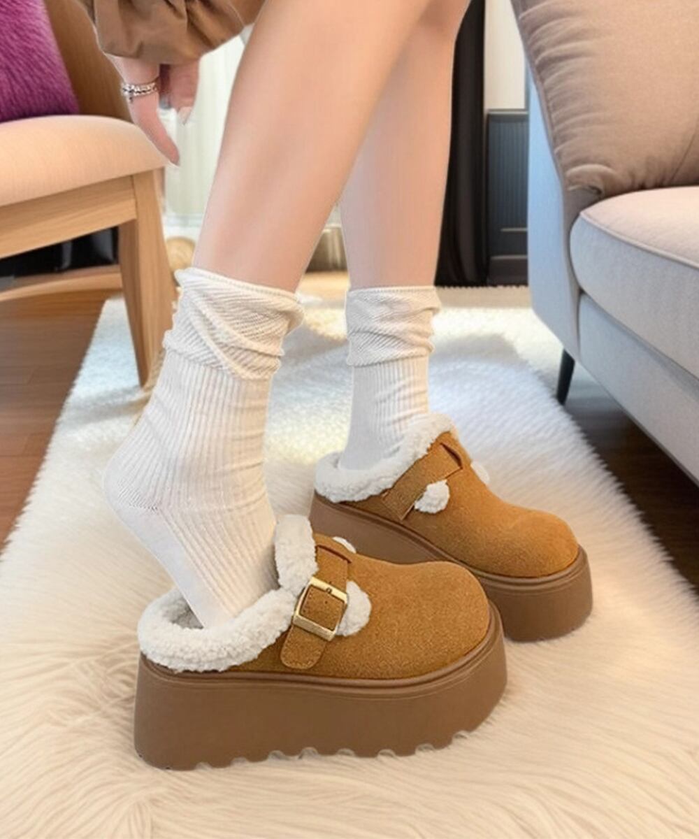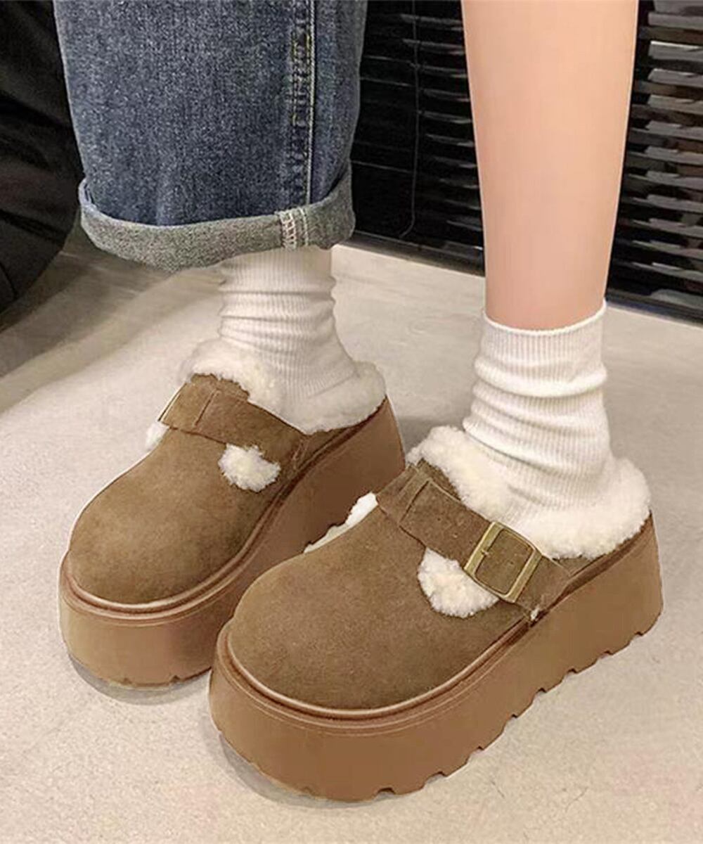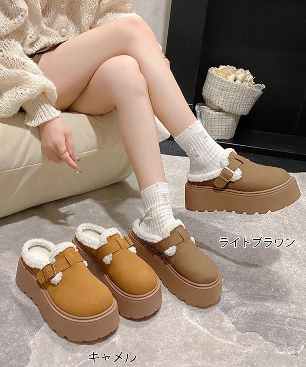 冷え対策保温厚底靴 ストリート厚底サボ 裏起毛ボアシューズ