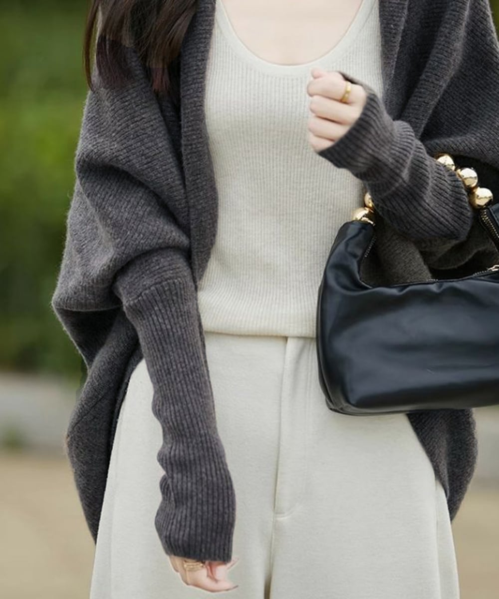 ゆったりとしたシルエットで抜け感のあるドルマンカーディガン。