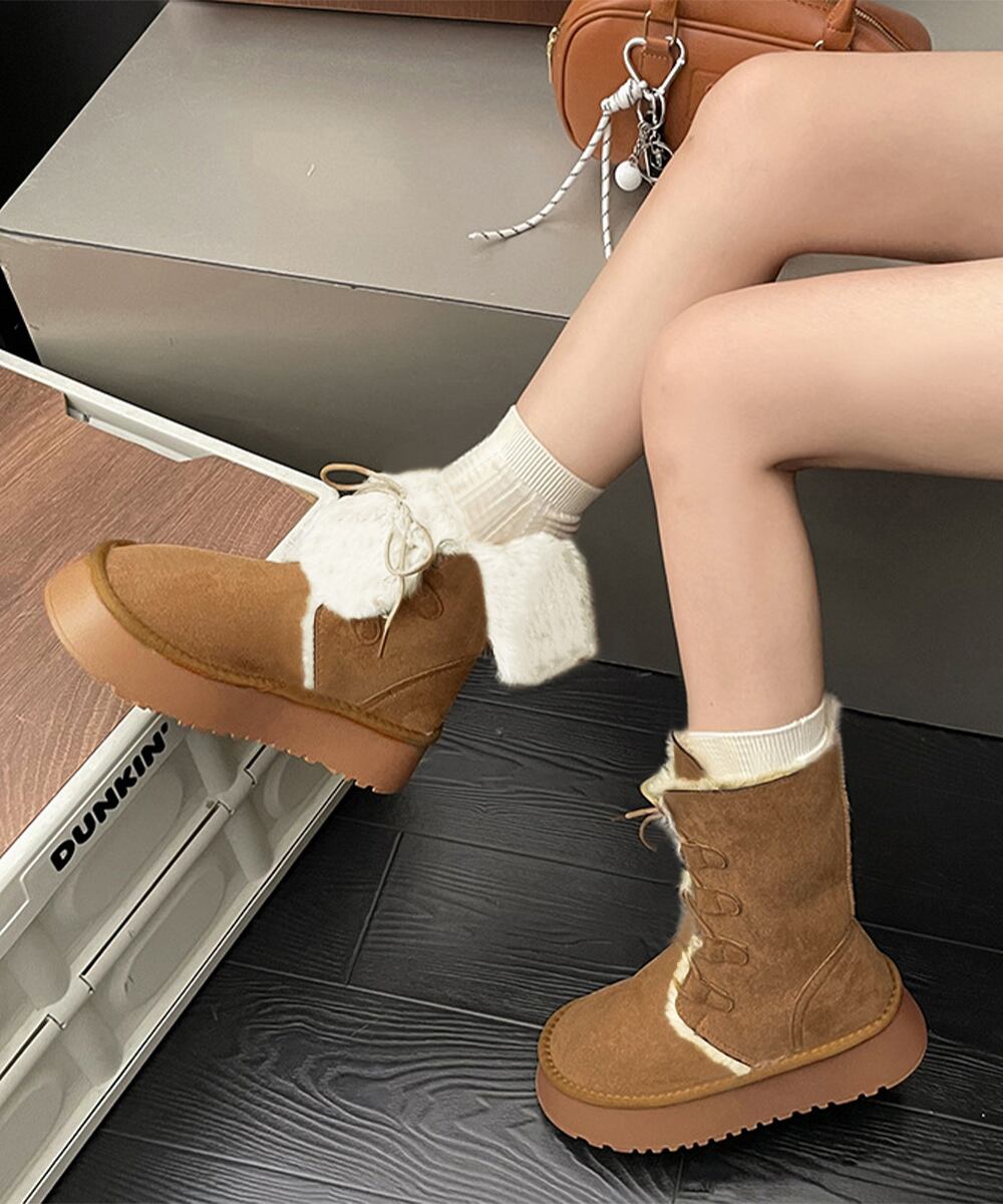 【日本倉庫からの発送】 ボアムートンブーツ裏起毛 厚底ブーツ冬靴 #[90JIANLONG-020_27600]【送料込み】【260128】