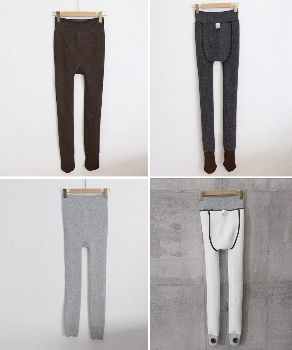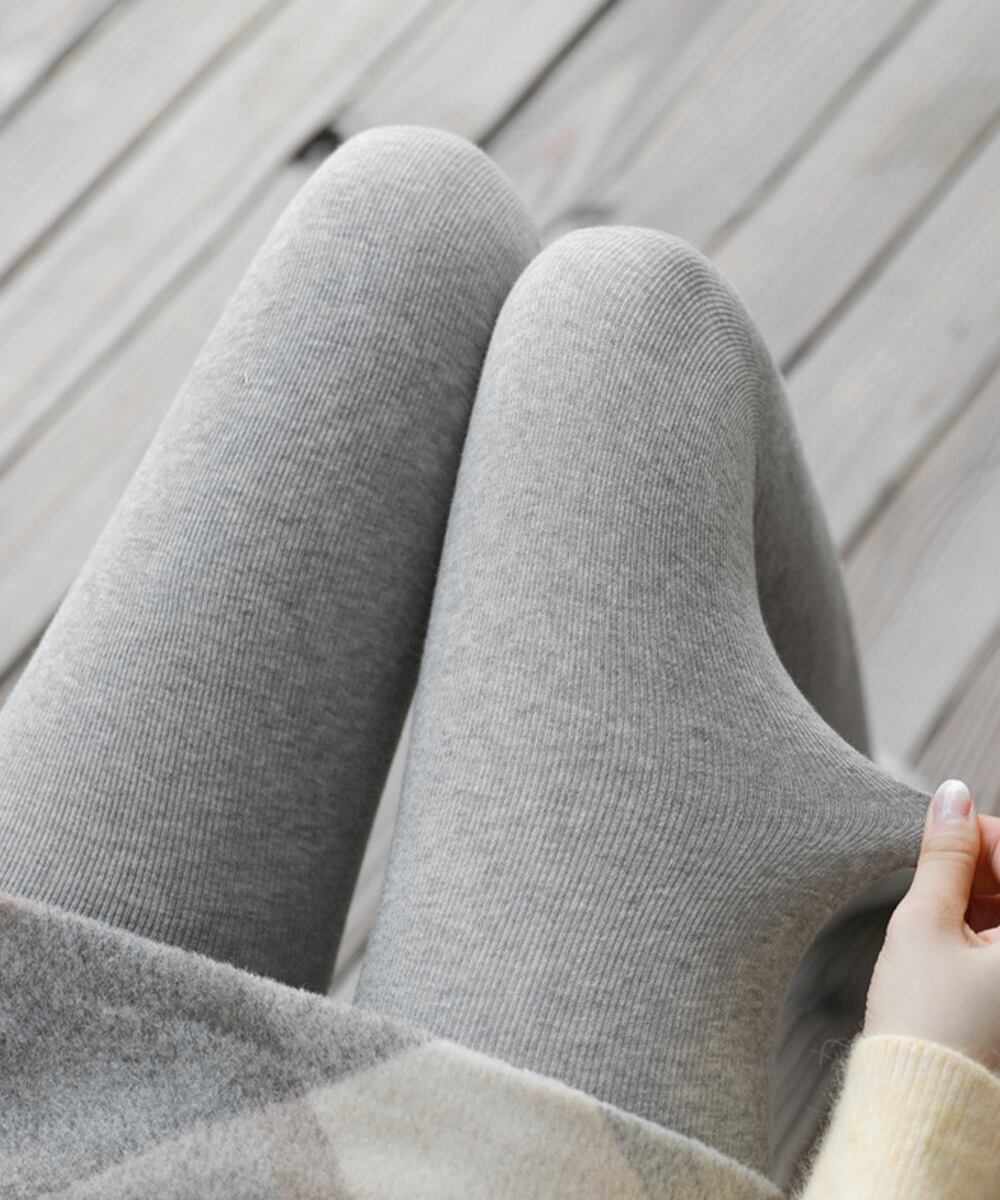 コーデに合わせやすい、リブ編みのシンプルデザインのレギンス。