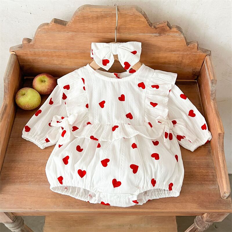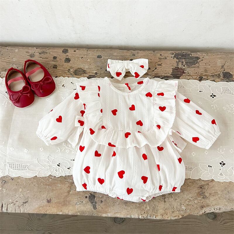 【海外からの取り寄せ】2026春新作 ベビー服 女の子 ヘアバンド付き ハート柄 長袖 ロンパース 子供服 可愛い おしゃれ #[ckd1095447_17700]【送料込み】【260131】