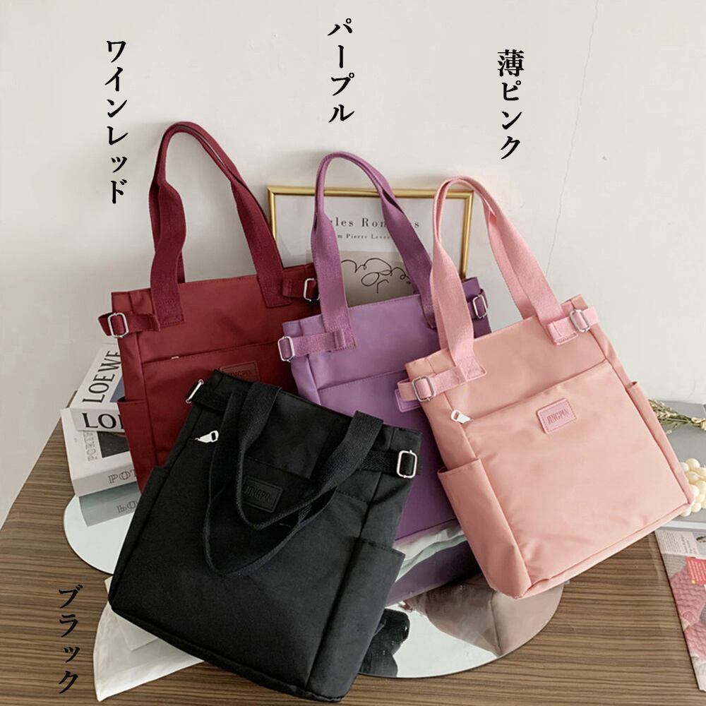 ナイロン A4サイズ対応 ハンドバッグ レディース マザーズバッグ 通勤 通学 手提げ サイドポケット スクエアカバン