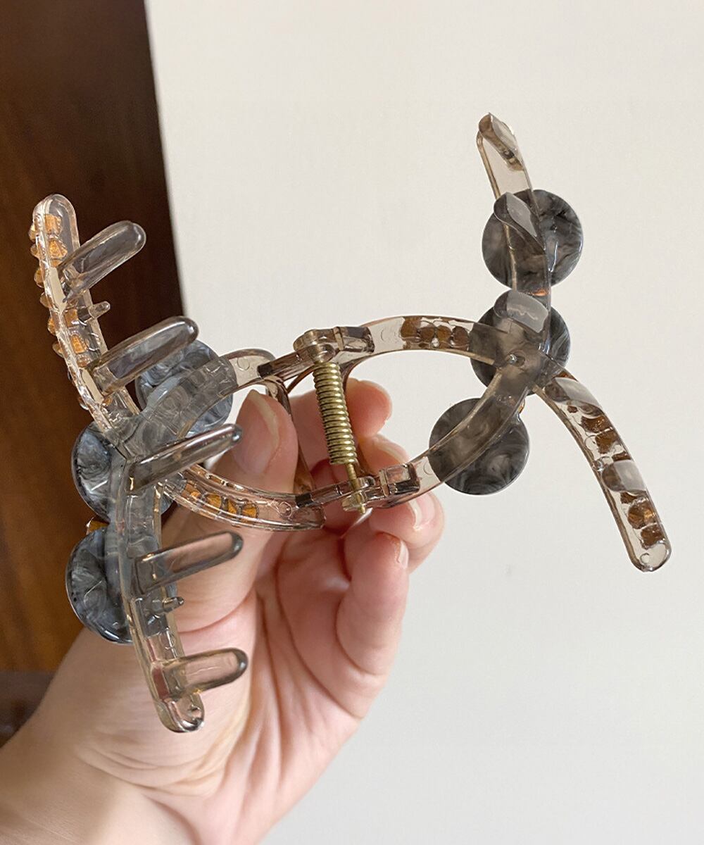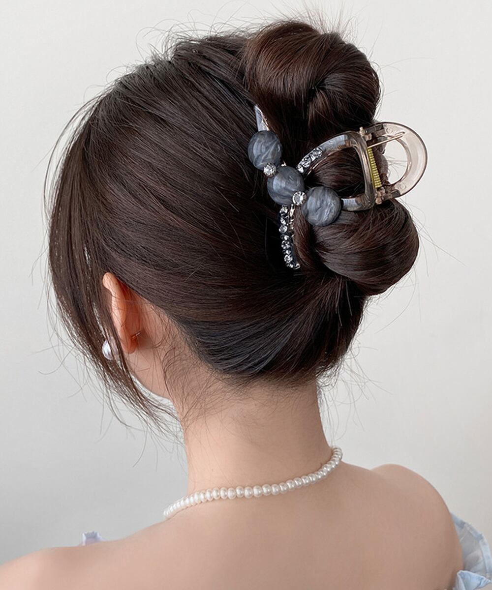 上品なビーズと繊細なラインストーンをあしらった、中サイズのバンスクリップです。