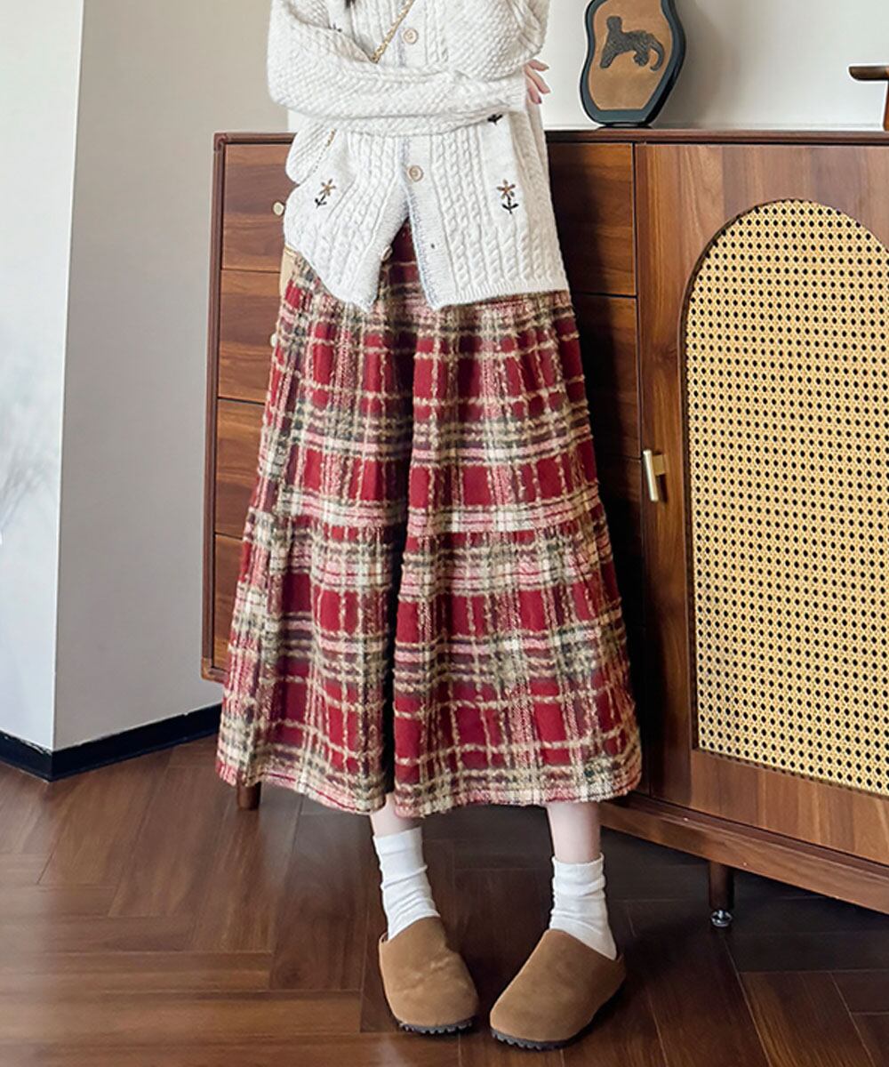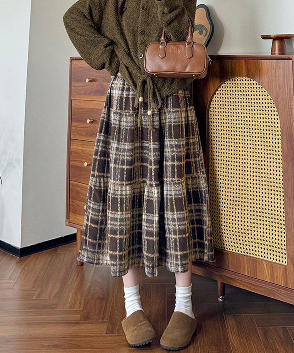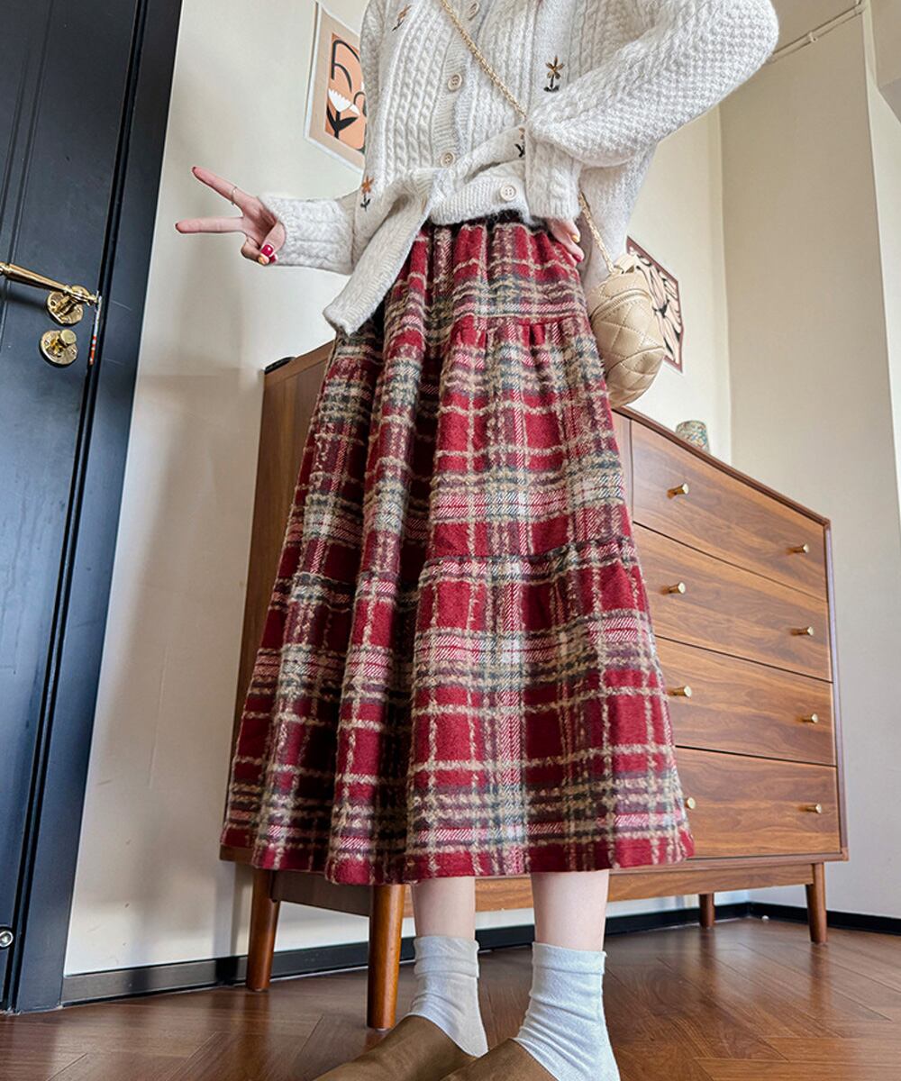 【日本倉庫からの発送】 フレアスカート Aライン チェック柄秋冬 #[99FZFZ-042_21700]【送料込み】【260130】