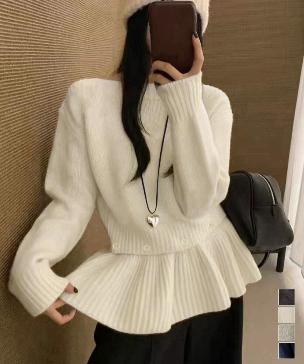 【日本倉庫からの発送】 ニットトップス韓国風ペプラムニット春秋冬 #[6XIANYUE-001_29100]【送料込み】【260130】